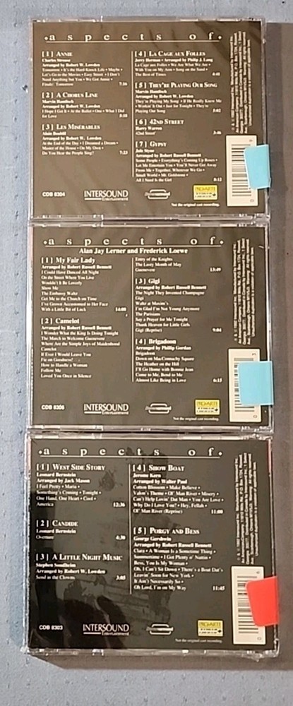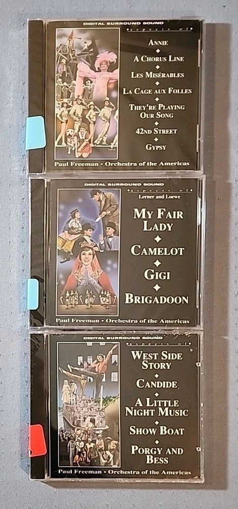 3 CDs Paul Freeman Orchestra of the Americans Brand New Factory Sealed 1.) Annie A Chorus Line La Cage Aux Folles They're Playing Our Song 42nd Street Gypsy 2.) My Fair Lady Camelot Gigi Brigadoon 3.) West Side Story Candide A Little Night Music Show Boat Porgy and Bess