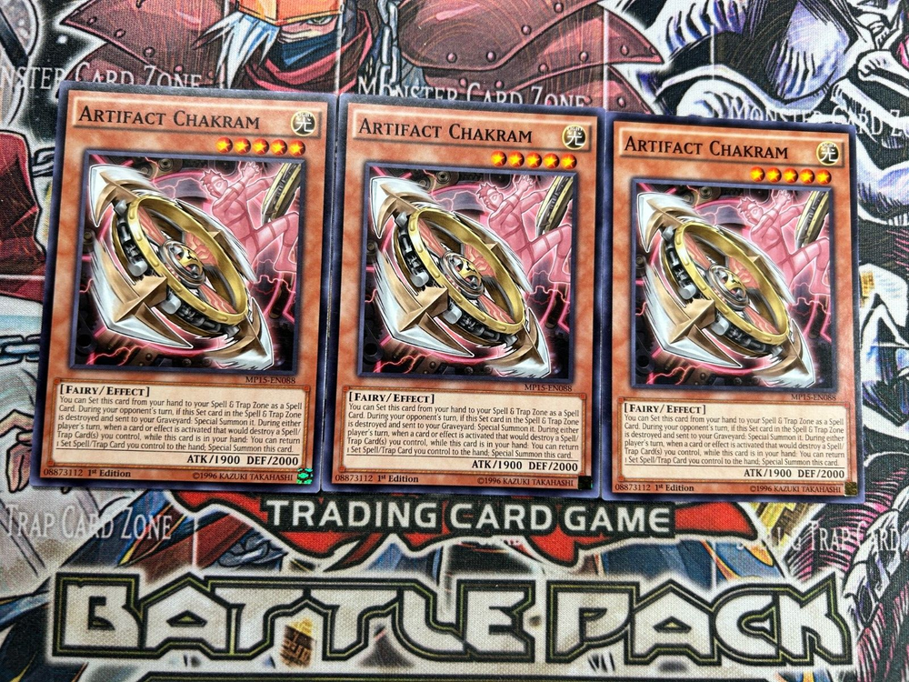 3x Artifact Chakram - 2015 Mega-Tins Mega Pack (MP15) | Common | MP15-EN088 | Yu-Gi-Oh! Near Mint: minimal signs of damage. May have a minimal scratch, blemish, etc. Free Shipping! We provide SUPER FAST SHIPPING If there are questions, comments, or concerns, contact us!