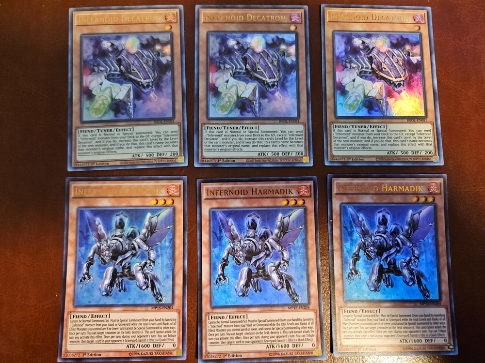 You are getting: 3x YuGiOh Infernoid Harmadik + Infernoid Decatron MP15 EN204 PLAYSET All cards comes with a top loader to ensure that your card is in the condition mentioned. I do NEXT BUSINESS DAY SHIPPING so you can get your card(s) as soon as possible and I do FREE SHIPPING ON ALL ITEMS! Check my Store f or more awesome items all with free shipping! Let me know if you have any questions.