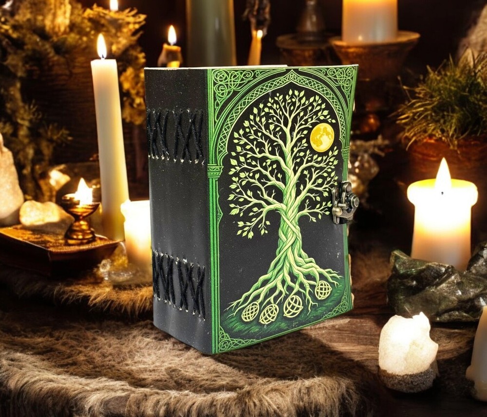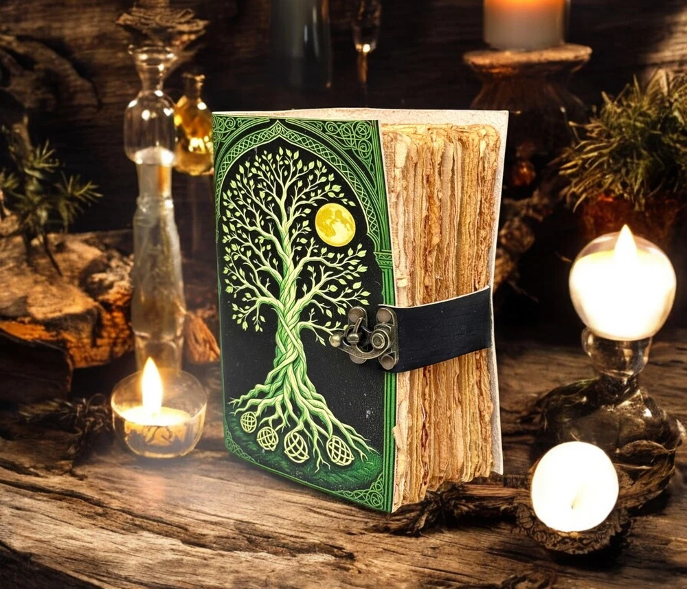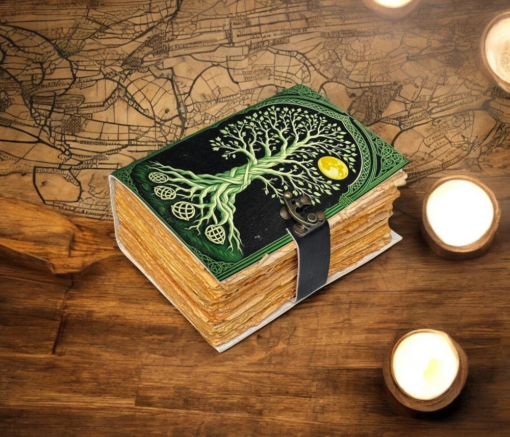 STYLISHLY MEDIEVAL HANDMADE VINTAGE PAPER - Ancient looking rustic cotton paper combined with the beauty of distressed leather, hand-stitched by Artisans, creates a keepsake you will cherish forever. Makes a great gift for the men, women, and Wiccans in your life! THE LOVERS LEATHER PRINTED DESIGN - Perfectly print with Cat Printed designs, this journal makes a thoughtful gift to anyone of different cultures. IMMACULATE CRAFTMANSHIP - These journals are built from 200 pages of excellent quality handmade vintage papers with 150 GSM thick, and rich, durable handcrafted genuine brown leather covers. STRONG, STURDY BINDING & SMALL BRASS C-LOCK- Great quality journals always start with their binding. For the Vintage Leather Cat Printed Journal, the binding is stitched by sturdy hands to make sure that the papers are safe and secure. Many Uses - Can be used as a notepad, journal, writing notebook, sketch book. 1.25 inch thickness, easy for handwriting, drawing or sketching and compact for carrying in your bag. Ideal for alternative Artist Sketchbooks, Photo Album, Traveling Notes, Business Executive, Logbook, Poetry Work, Journalists, Food Planner, Instagram Scrapbook and Bible Journaling.