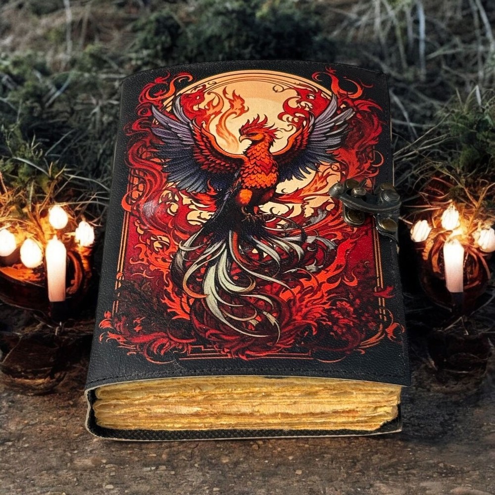 STYLISHLY MEDIEVAL HANDMADE VINTAGE PAPER - Ancient looking rustic cotton paper combined with the beauty of distressed leather, hand-stitched by Artisans, creates a keepsake you will cherish forever. Makes a great gift for the men, women, and Wiccans in your life! THE PHOENIX LEATHER PRINTED DESIGN - Perfectly print with Cat Printed designs, this journal makes a thoughtful gift to anyone of different cultures. IMMACULATE CRAFTMANSHIP - These journals are built from 200 pages of excellent quality handmade vintage papers with 150 GSM thick, and rich, durable handcrafted genuine brown leather covers. STRONG, STURDY BINDING & SMALL BRASS C-LOCK- Great quality journals always start with their binding. For the Vintage Leather Cat Printed Journal, the binding is stitched by sturdy hands to make sure that the papers are safe and secure. Many Uses - Can be used as a notepad, journal, writing notebook, sketch book. 1.25 inch thickness, easy for handwriting, drawing or sketching and compact for carrying in your bag. Ideal for alternative Artist Sketchbooks, Photo Album, Traveling Notes, Business Executive, Logbook, Poetry Work, Journalists, Food Planner, Instagram Scrapbook and Bible Journaling.