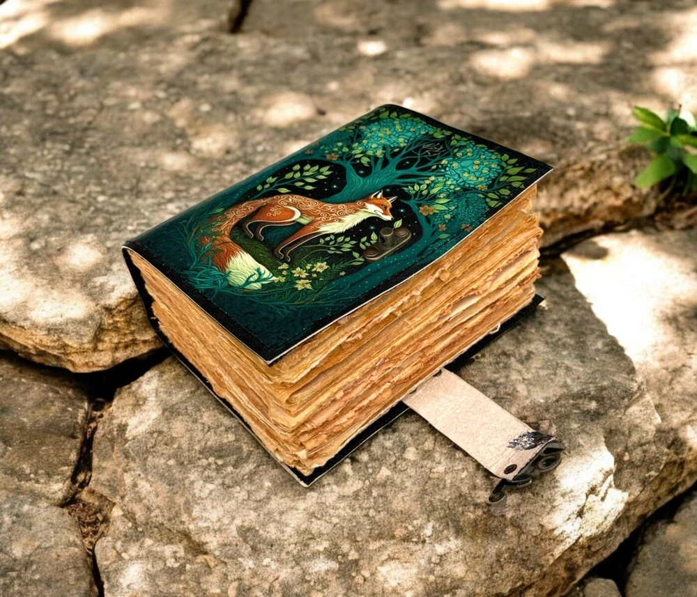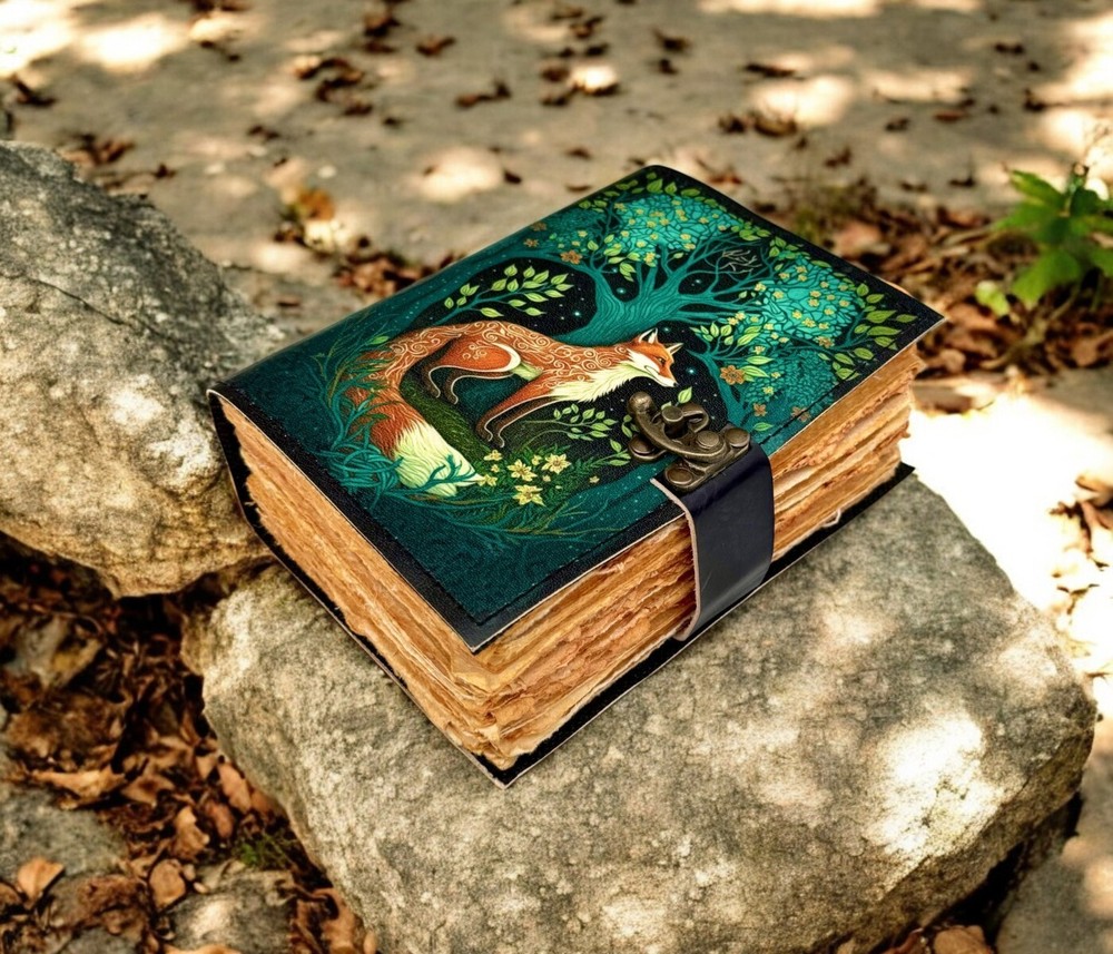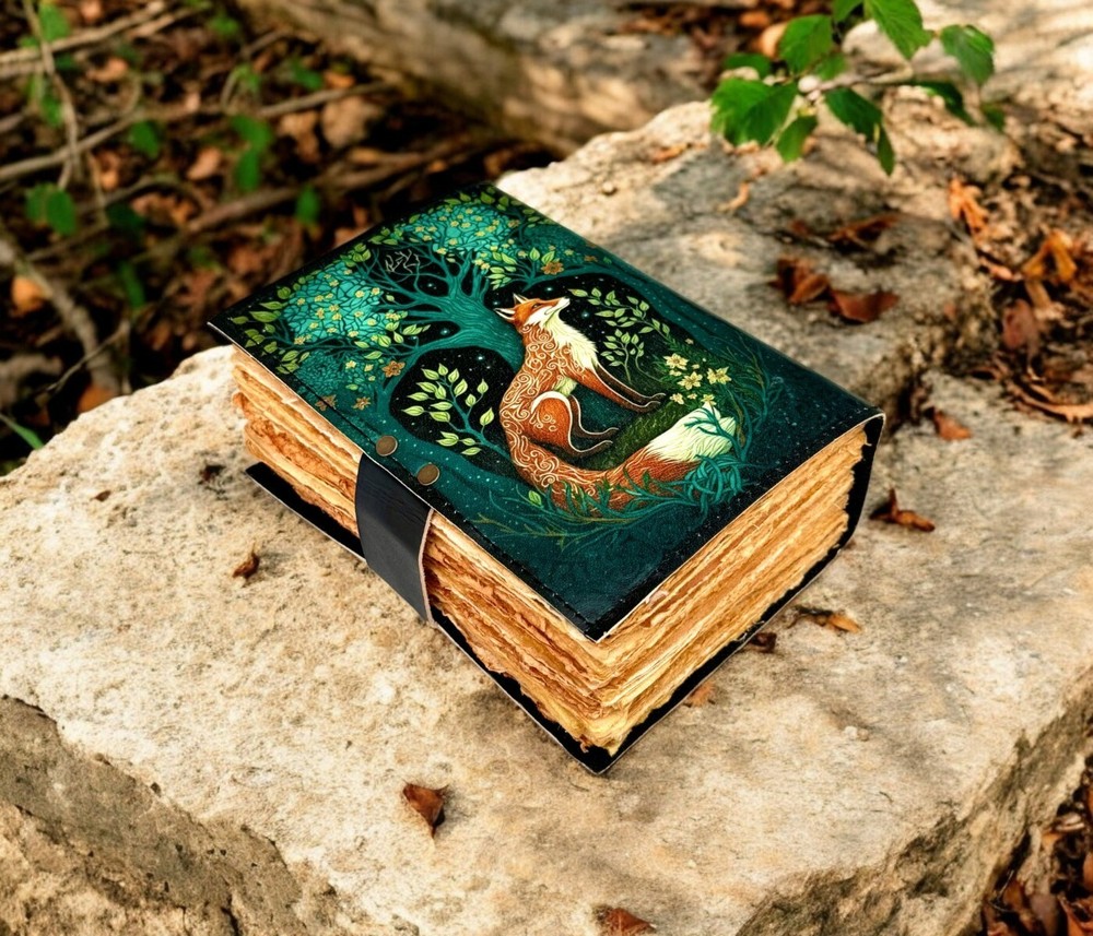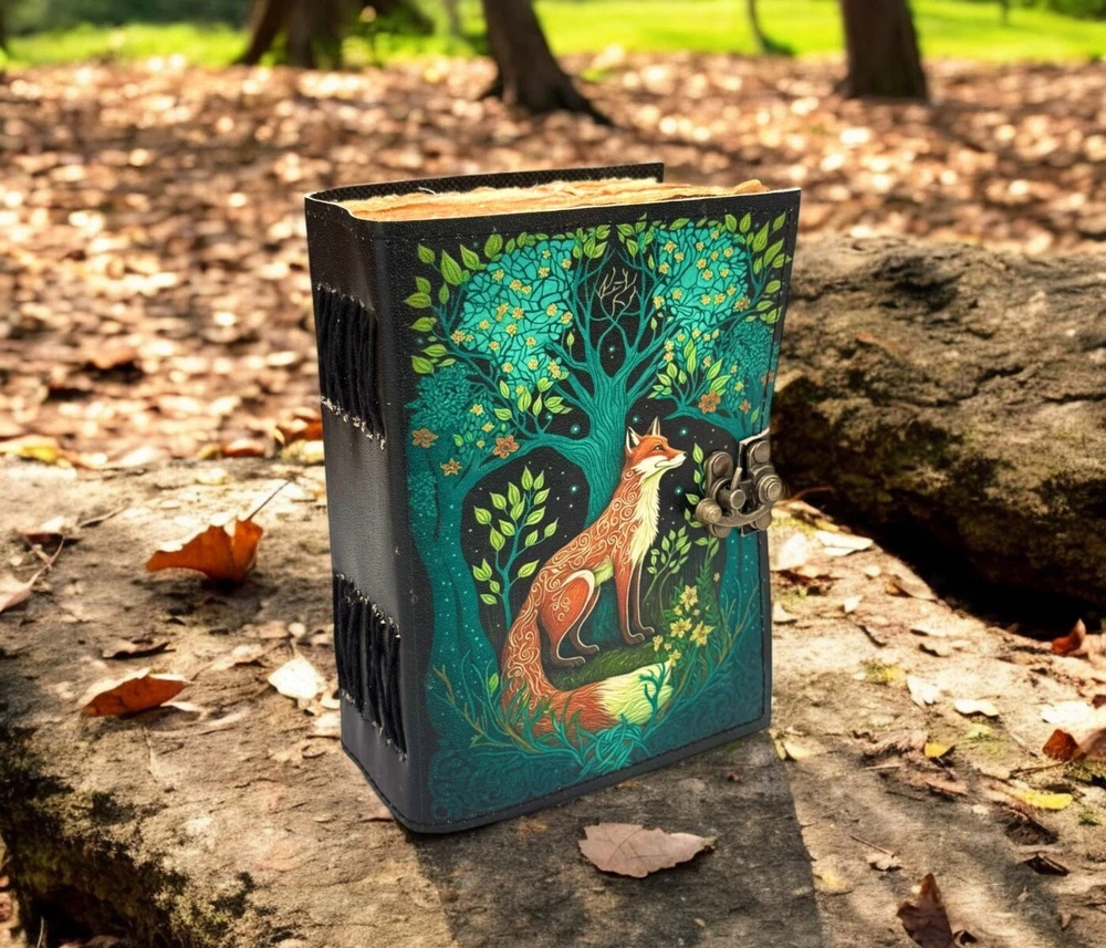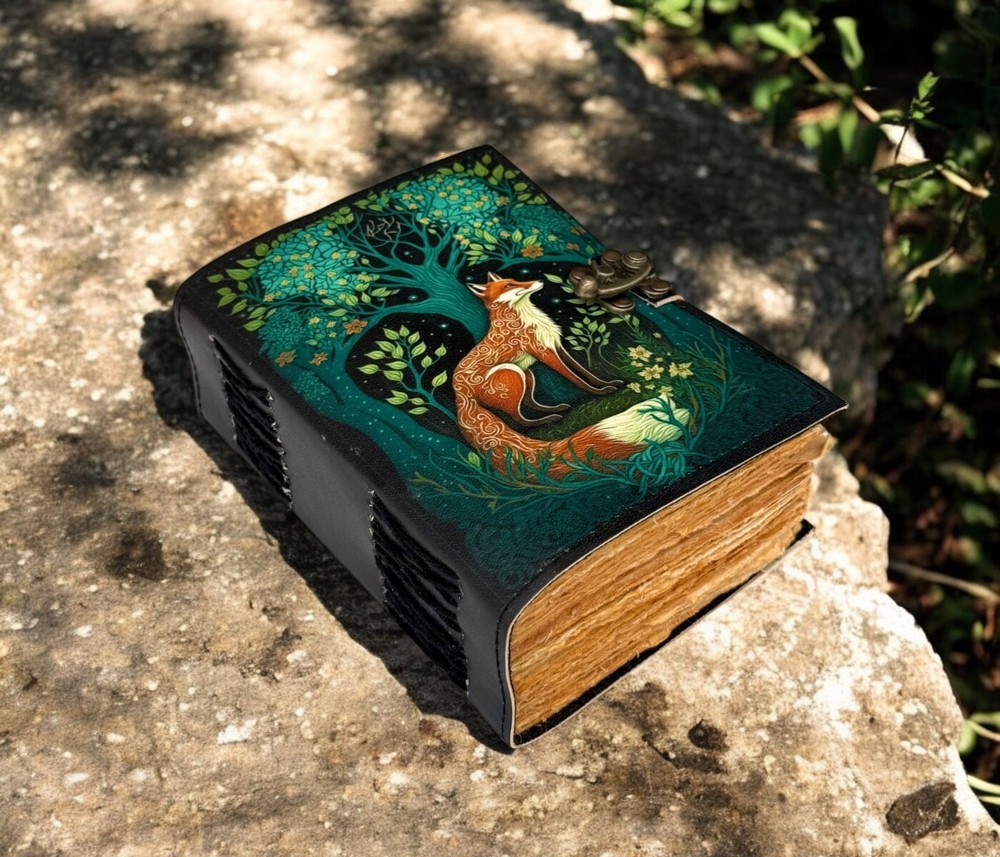 400 Pages - Fox Leather Journal Rustic vintage leather - Grimoire leather journal - book of shadows - Fat journal gift for men and women •Fox Leather Journal Rustic vintage leather • C-Lock brass • genuine buffalo leather • vintage deckle edge old paper. • 200 Sheet (400 pages both side) • Available all Size 7x5'' 8x6'' 10x7'' 13x10 '' Fox Leather Journal Rustic Notebook for Writing & Sketching Gift for her, Handcrafted Diary, Book of Shadows, Vintage book, Blank spell book Grimoire journal - Blank spell witch, book of shadows, Gifts For Men and Women ● Antique Paper - Vintage Journal is made of unique vintage paper which looks like it was pulled from history. You will love the old looking handmade cotton paper (200 pages) which is unique to our vintage journals. ● VINTAGE LOCK AND STURDY BINDING - The vintage lock will keep all your valuable writing locked inside. Sturdy hand stitched binding to make sure that no paper comes out loose from your vintage notebook. ● Sketchbook is great for keeping by the bedside to jot down dreams, or for use as a diary or journal. ● It is a truly unique and wonderful gift for a friend, the men, women, and wiccans in your life! or to treat yourself to as a special keepsake ● our journals are influenced by symbolism that is derived from the Wicca/Pagan community, creating a personalized space where your inner creative genius can flourish. ● The paper is made from sustainable cotton and jute canvas. The paper is acid-free and pH neutral therefore is a timeless piece of art. ● Use Any Kind Of Pen - Sketch, Doodle, Write on your journal notebook with a Calligraphy Pen Fountain Pen, Brush Pen, Ball Pen, Acrylic Colours, Watercolor and many more. Grimoire The Skull lover Leather Print journal Antique Notebook And Deckle Edge unlined paper. My clients usage: Gifts for him , valentines gift, anniversary or wedding or housewarming gifts, home decor, modern home decor and many more