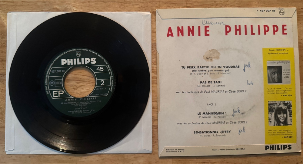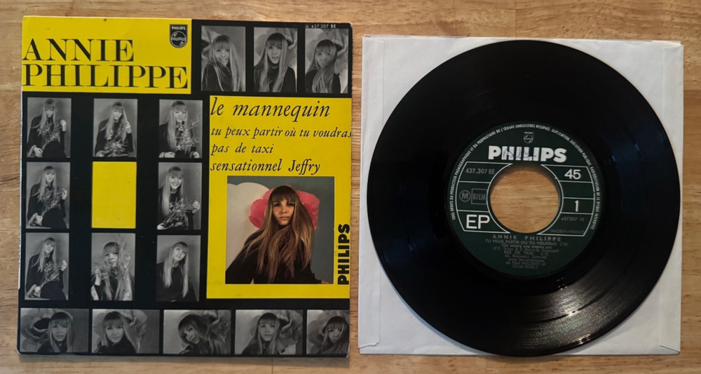 45 FRENCH EP ANNIE PHILIPPE, PHILIPS 437.307, PAS DE TAXI + 3, SLEEVE: VG+, RECORD: VG+, S/H: $5.25, I COMBINE SHIPPING. SEE MY OTHER FRENCH EP RECORDS. For country who don't get tracking number after the item leaves the USA, registered with signature the item will be sent, NO EXCEPTION!! I'm fed up with scammer! if you doon't agree DOON'T BID!!!