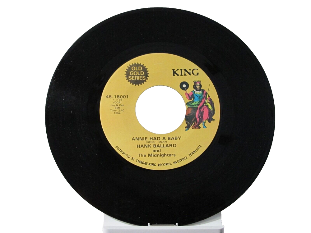 This 45 RPM record features the talented Hank Ballard and The Midnighters, with the hit songs "Annie Had a Baby" and "Work with Me, Annie". The vinyl record is in the paper sleeve case type and has a catalog number of #26,364, #37,317. The record is from the 1950s era and has a near mint (NM or M-) grading. It is a single format record with a speed of 45 RPM. The record label is King and the release year is 1958. This R&B and Soul genre record is etched and has a record size of 7". It is a great addition to any music lover's collection.