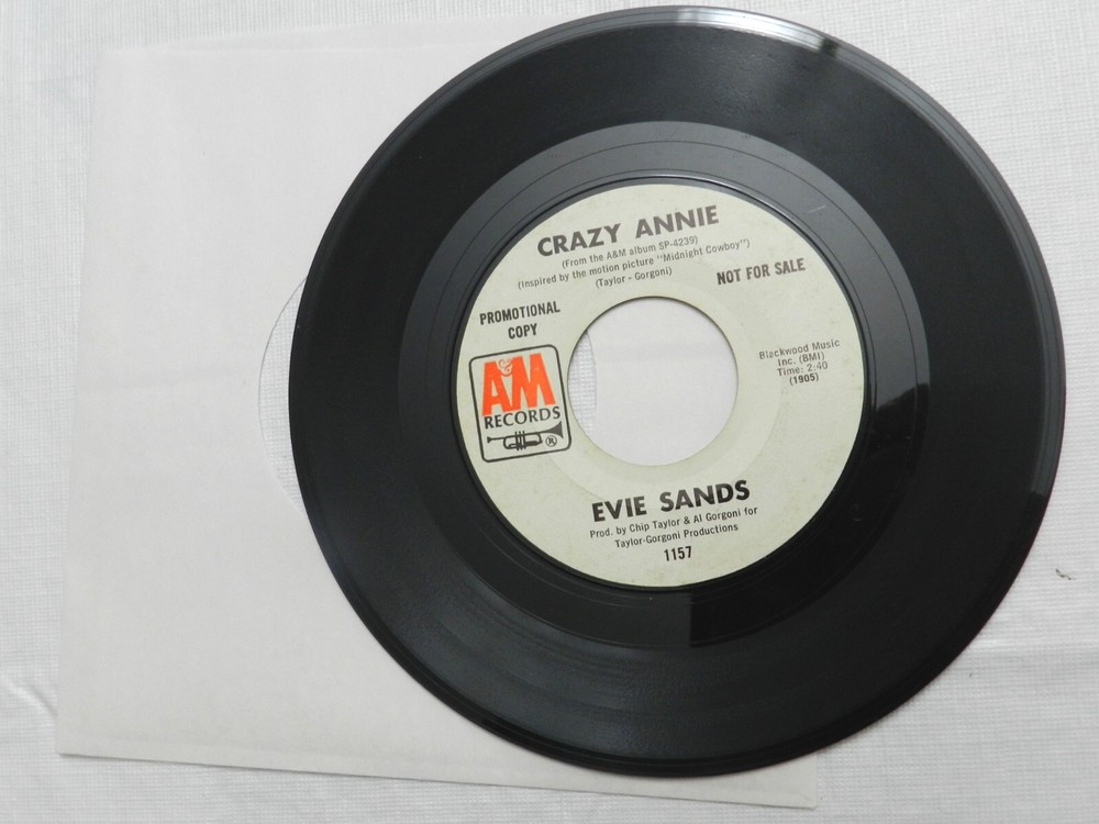 Discogs lists the style as, Pop, Stage and Screen. Both sides have the same song, Crazy Annie. Found in plain white sleeve, LOOKS QUITE PLAYABLE with a light scratch or scuff over clean vinyl, will grade VG++. 45s