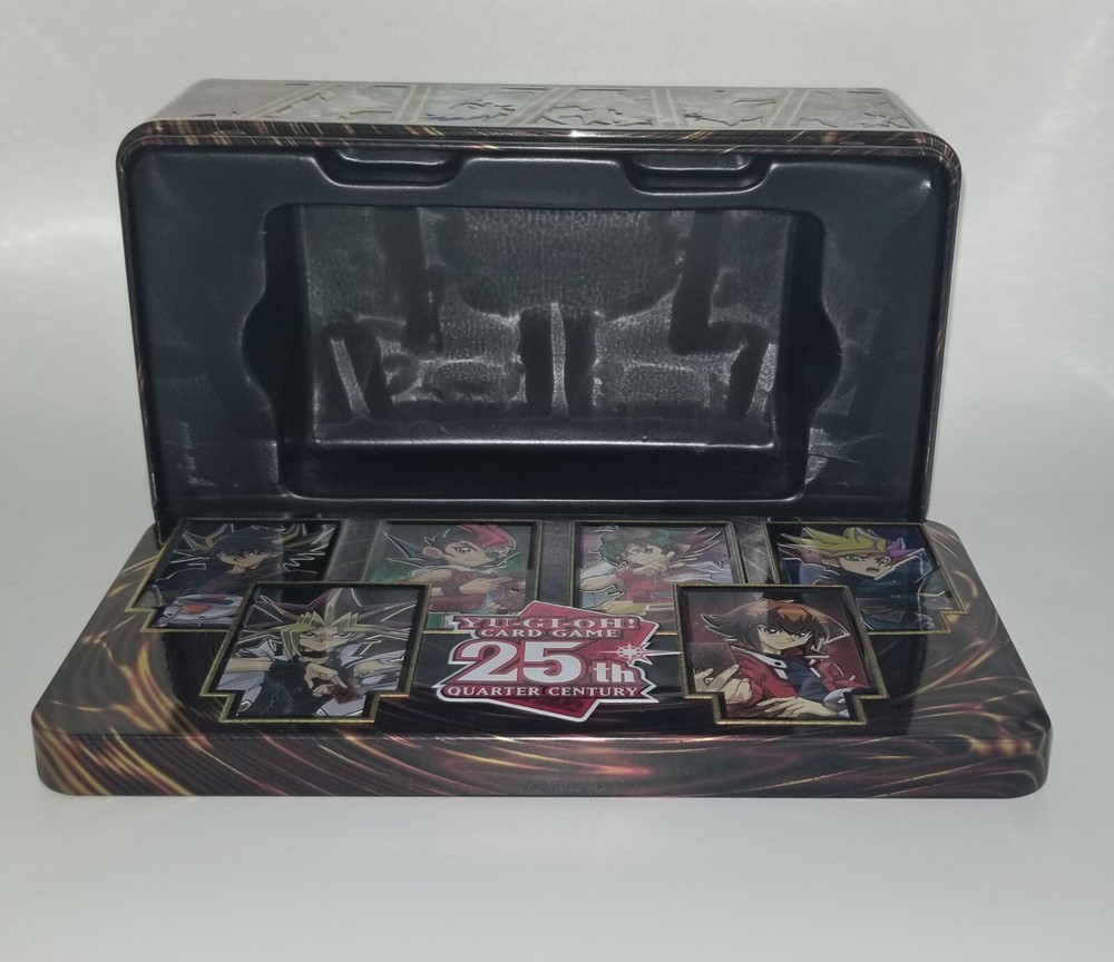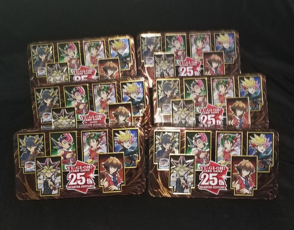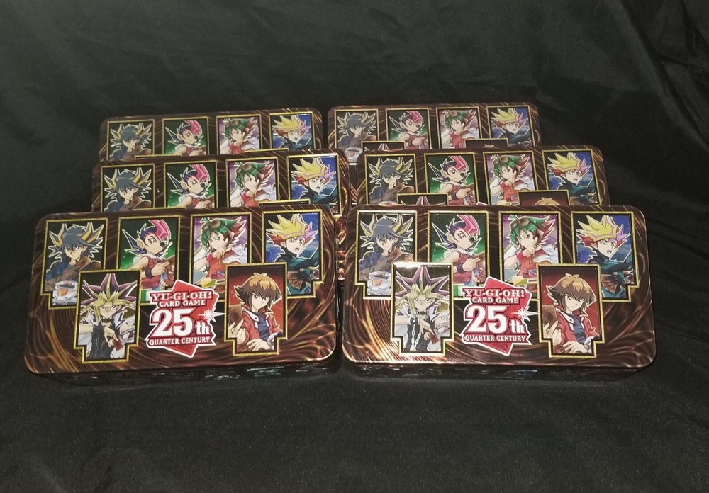 You are bidding on the following item, as shown in the picture(s) provided and described below. ============================================================ DESCRIPTION (6) EMPTY - Official Yu Gi Oh Dueling Heroes 25th Anniversary Collector Tin Lot Collector Tins are in near mint / mint condition and are dent free. * THIS LOT IS FOR 6 EMPTY Yu-Gi-Oh 25th Anniversary TINS ONLY * ============================================================ PAYMENT If payment is not received within 2 days of the closing date of this item, an unpaid item dispute will be opened with eBay. Feel free to contact us if there are any questions regarding payments or shipping prior to purchasing this item. SHIPPING Shipping for this item is Calculated Based On Buyers Location . Depending on the buyers preference this lot will be shipped via USPS Ground Advantage or USPS Priority Mail with Tracking. .