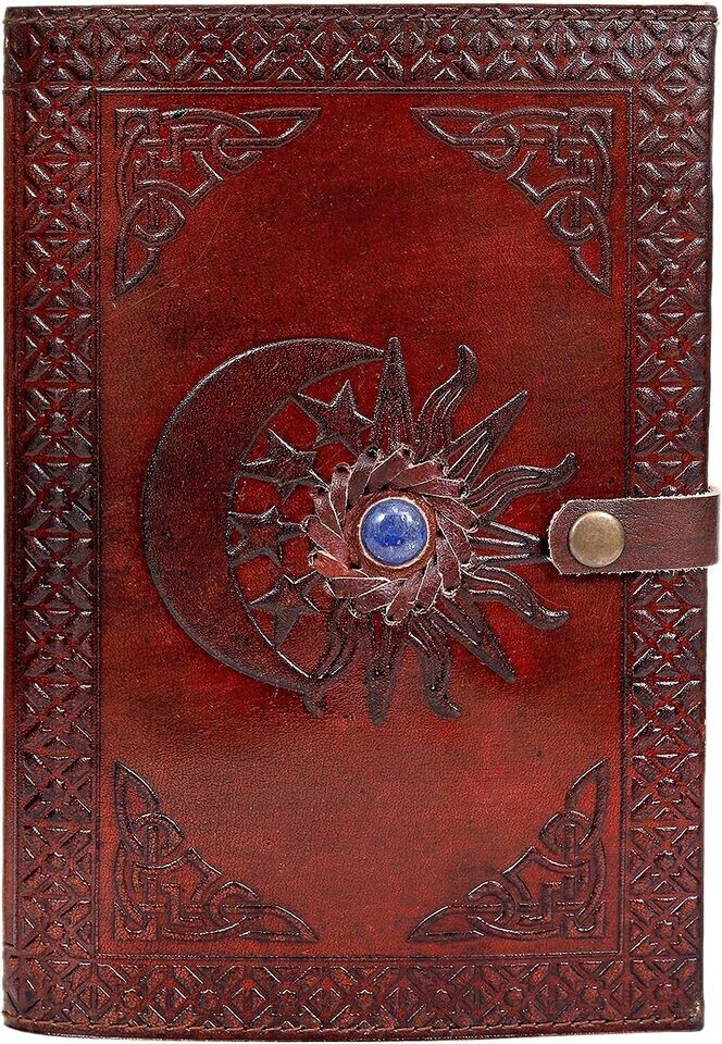 Introducing the SUN & MOON Blue Stone Leather Journal: Handcrafted Excellence: Made from genuine top grain leather, each journal is meticulously crafted and hand-stitched to create a timeless space for your thoughts. Quality Lined Pages: This journal features 180 pages of thick, natural 115GSM kraft paper, providing the perfect canvas for your writing. The thick paper prevents bleed-through, and the pages are unlined with 5.5mm spacing to accommodate various pen types. Your Story Awaits: Our classic leather journal is designed to be a time capsule for your thoughts and memories. Use it to capture your most cherished moments, accomplishments, life-changing events, and evolving dreams—a keepsake to reflect upon in the years to come. A Thoughtful Gift: Share the gift of a special keepsake with your loved ones. Whether it's for a birthday, anniversary, graduation, or any other occasion, this leather-bound journal is a lasting and meaningful present that will be treasured for years.