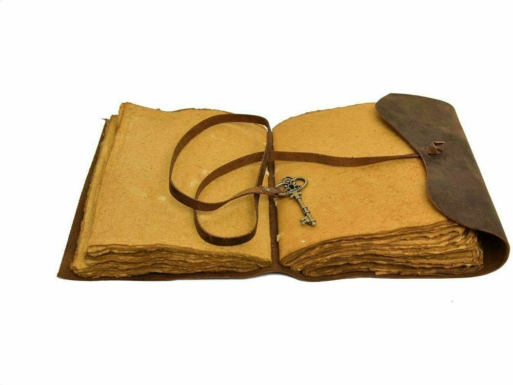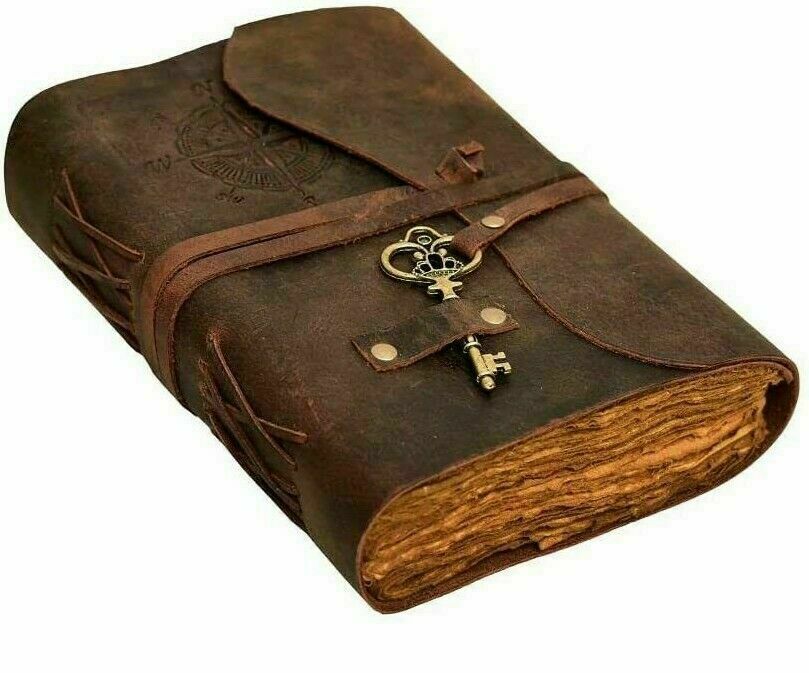 ✔️ PERFECT LEATHER NOTEBOOK HANDCRAFT JOURNAL - Made from 100% Buffalo Leather with Antique Deckle Edge Paper. 240 PAGES This Book Is Hand Crafted by Artisans Working with Leather for Decades. The Color of The Journal Is Very Unique Vintage Brown. ✔️ Use Any Kind Of Pen - Write/sketch/doodle on your classy journal notebook with a Fountain Pen Calligraphy Pen, Ball Pen, Brush Pen, Acrylic Colors, Watercolor. IDEAL USE AND PERFECT GIFT – Perfect Use for Business Executive, Poetry Work, Journalists, Craftsman, Writer. A Lovely Treat for Your Loved Ones for An Anniversary, Birthday or Graduation Present, Or for Someone Starting A New Adventure and A Perfect Gift for Those Who Love Vintage One. ✔️ Dimension – (7” X 5” X 1.2”) With Uncut Deckle Edge Paper, Easily Handle Notebook, You Can Fit with Minimum Space, Easily Handle in Long Journey. Once You Have Used It You Will Feel Like You Have the Best Journal in the World. ✔️ Hand Work Binding AND KEY BOOKMARK – Binding Is Made by Hand Stitching Which Having Enough Strength That the Paper Never Comes Out. The Key Is Very Antique Can Be Used as Bookmark. The Leather Strap Wrap Around the Journal Is Complete Solution for Paper Safety and Open-Close the Journal. The Journal Made by High Quality Buffalo Leather and Paper Have Been Used Is Vintage Historical Paper Which Is Very Durable.