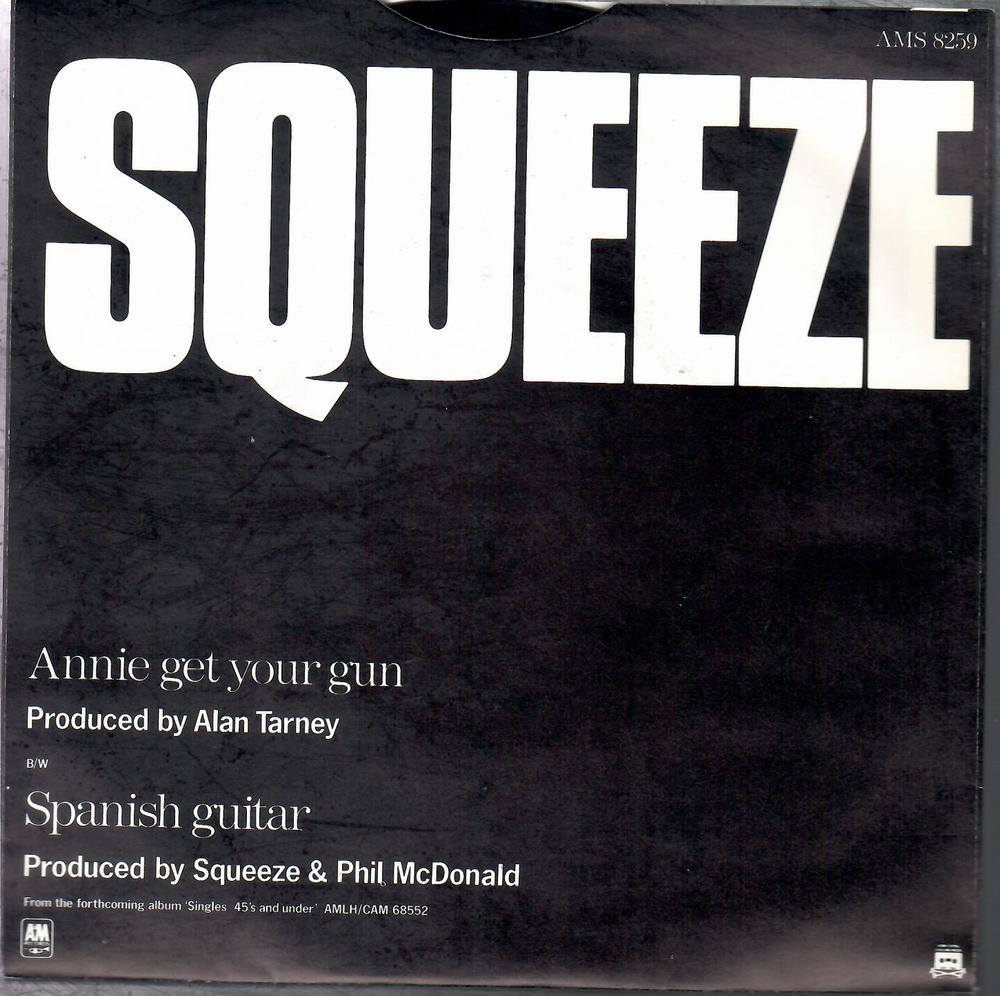 7" VERY RARE ANNIE GET YOUR GUN BY SQUEEZE (1982) A & M RECORDS AMS 8259 UK SIDE A ANNIE GET YOUR GUN SIDE B SPANISH GUITAR VERY GOOD CONDITION