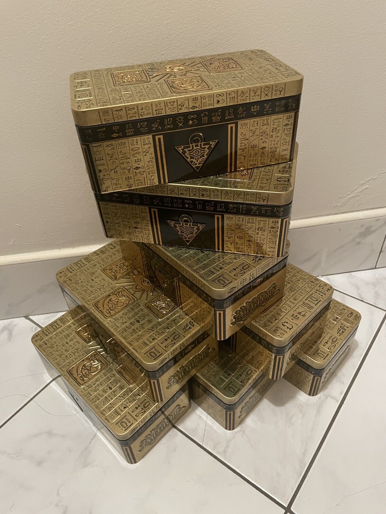 8x YUGIOH EMPTY Mega Tin 2022 The Pharaoh’s Gods ONLY TIN MP22 Brand New Mint. Eight new YuGiOh tins from the 2022 Pharoah’s Gods release. They are all like new, undented, no scratches. The boxes CONTAIN NO CARDS. They are tins only.