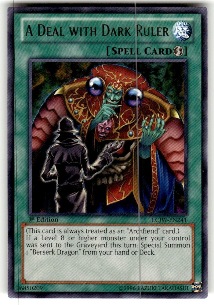 line shown is from the scanner and not on the actual cardA Deal with Dark Ruler LCJW-EN241 Legendary Collection 4: Joey's World 1st Edition
