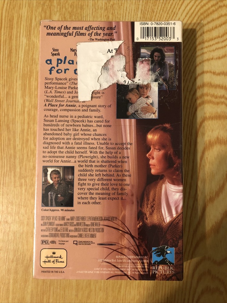 A Place for Annie (VHS, 1994). There is some sticker residue on the back of the cellophane....