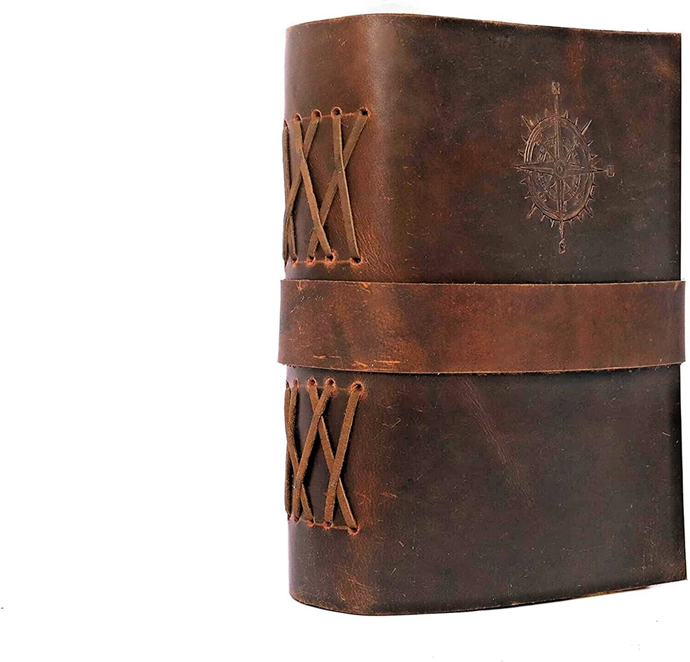 This A4 size journal is perfect for those who love nautical themes. The cover is made of high-quality leather and features a compass rose, making it a great addition to any collection. The journal is blank, allowing you to fill it with your own thoughts, ideas, and notes. It is perfect for keeping a log of your daily activities or jotting down important information. This unit was manufactured in India and comes with one journal. *Product details Handmade journal, blank books, personalized leather, vintage diary, genuine leather journal, anniversary gift, gifts for her, personalized gifts, gifts for him, leather journal, valentines gifts, a5 journal Customized size Size - 7x5 inches (200 on both sides) Size - 8x6 inches (200 on both sides) Size - 9X12 inches (200 on both sides) Paper - 100 pages (200 on both sides) Paper - Pure Cotton Hand Made Plain Paper (Unline) Leather Colour: Brown and dark brown Leather - Full Grain Leather (Best Quality) Soft and durable natural handmade leather Quality Metal Hardware (Brass metal) Ideal gift for writers, poets, artists etc. Tied with traditional sewing methods *Materials: Full Grain Leather, Antique Brass Hardware, Handmade Sheets, Natural Leather, Handmade Paper, Unlined Paper, Leather Journal, Leather Diary, Leather Unlined Diary, Blank Paper Diary, Leather Cover, Notebook, Leather Sketchbook Artist Sketchbook, Photo Album, Traveling Notes, Business Executive, Logbook, Poetry Work, Journalist, Food Planner, Instagram Scrapbook, Bible Journalism, Documenting Your Spiritual Journey, A Dream Journal, A Book of Shadows, Grimoire, Sketchbook, Idea Book for Ideal , prayer book, gratitude journal, a daily journal or anything else you can think of. Luxury, Handmade, Fair Trade and Eco-Friendly Capture and share your thoughts before you walk away Handy for handwriting, drawing or sketching and compact to carry in your bag hpprox 100 sheets/200 pages of online paper Hand crafted non-bleeding paper made from recycled cotton that is chemical free Due to the Coptic binding process, this magazine is not refillable - it is unique in its kind! Hand-stitched Coptic leather binding secures pages firmly Suitable for all pens and pencils easy to care for Wipe slightly dry with a tissue, or rub in circular motions to reduce scratches and dust Shipping&Delivery Free worldwide shipping on all products. USP Inspired by distressed vintage style Handcrafted by Me and Skilled Village Artisans Fair trade factory price (no middleman) GUARANTEED HIGH QUALITY SELECTED LEATHER y friendly (no chemicals used) Handmade recycled cotton pit paper Welcome to the world of Leather Diary Handmade by