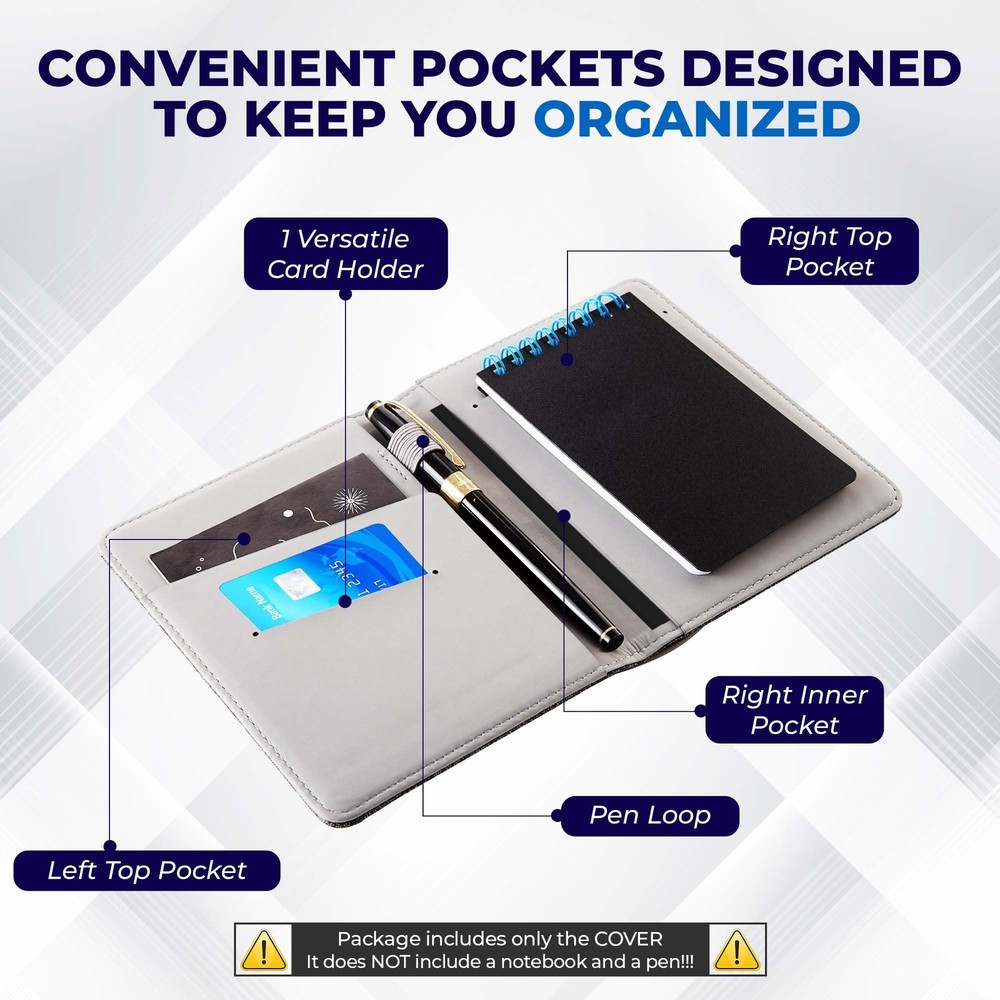 OOKU A6 Travelers Notebook Cover Compatible with Rocketbook Mini | Top Bound Spiral Journal Notebook Cover | PU Leather Cover for Pocket Notebook 3.5" x 5.5" With Pen Loop, Business Card Organizer ✅【MULTI-COMPATIBILITY】: Our travelers notebook cover is compatible with any softcover pocket notebook under 3.5" x 5.5", including Rocketbook smart reusable notebook mini size 3.5" x 5.5", Moleskine notebooks 3.5 x 5.5, Rite in the Rain 3" x 5", memo pads 3" x 5", small composition notebook 3x5, and other top bound or top-spiral notebooks under 3.5" x 5.5" 📚【PROFESSIONAL POCKET NOTEBOOK ORGANIZER】: Stay organized on the go with the OOKU journal cover. It features 1 card slot, 1 pen holder, and 3 interior pockets for neatly storing everything: cards, cash, notes, passport, microfiber cloth, and more. The right pocket also has a vertical slot for your vertical-style top-bound 3.5" x 5.5" refillable notebook. Notice: package includes only the COVER; it does not include a notebook and a pen!!! 🛡️【STURDY & WATERPROOF LEATHER NOTEBOOK COVER】: Our 3.5"x5.5" mini spiral notebook cover is crafted from premium PU leather, ensuring durability and water resistance. It withstands daily wear and tear, ages gracefully, and provides long-lasting protection for your notebook 💫【STYLE YOUR JOURNALS AND NOTEBOOKS】: Give your journals and digital notebooks a stylish home with the intricately cut-out journal cover. This vintage-inspired cover brings a touch of chic and class to your preferred organizer planner, making it a fashionable accessory ✍️【ENHANCE YOUR WRITING EXPERIENCE】: This A6 notebook cover offers a comfortable surface, smooth writing experience, and easy page flipping. Ideal for travelers, writers, students, teachers, journalists, and entrepreneurs. Perfect for capturing thoughts, drafts, sketches, notes, and more Shipping We offer FREE shipping on all orders! We ship within Three business days of payment, usually sooner. We use a selection of shipping services such as UPS, FedEx, USPS etc. We only ship to the lower 48 states, no APO/FPO addresses or PO Boxes allowed. Local pickups and combined shipping options are not provided at this time. International buyers – please note: Import duties, taxes, and charges aren't included in the item price or postage cost. These charges are the buyer's responsibility. Please check with your country's customs office to determine what these additional costs will be prior to bidding or buying. Order Cancellation Policy * Order Cancellation Policy ** You can return a product for up to 30 days from the date you purchased it. 1. The seller reserves the right to cancel the special case only due to eBay cancellation fee. 2. The decision of seller is the final. 3. The seller will respond to the cancellation request within 2 business days. Please wait for the result of cancellation. 4. In case the cancellation is not completed by some reasons, the buyer can follow the options below to get the refund. 4.1 The buyer can reject the item when it arrives. 4.2 The buyer can send the item back to the seller within 30 days If the buyer receives item (USA Shipment ONLY). The seller will provide the FREE return label to the buyer when the buyer opens " Return Item" case on eBay by using the reason as "Change my mind" ONLY. 5. When buyer has placed the order. The order will be processed and completed by automatic warehouse system within 5 minutes. In case that buyer sends the cancellation request after 5 minutes of placing the order, the request will be rejected. **Sending direct message to cancel the order is not allowed for every case.* Return Policy - If buyer would like to return the items for refund or replacement, please CONTACT SELLER to receive the free return label from seller. The refund or replacement will be processed with the tracking number of return label which is provided by seller only. The other ways of return which are not approved by seller will not be processed for the refund or replacement. Return You can return a product for up to 30 days from the date you purchased it. Any product you return must be in the same condition you received it and in the original packaging. Please keep the receipt. Payment We accept payment by any of the following methods: eBay Payments Please pay as soon as possible after winning an auction, as that will allow us to post your item to you sooner! Feedback Customer satisfaction is very important to us. If you have any problem with your order, please contact us and we will do our best to make you satisfied. Contact Us If you have any queries, please contact us via ebay. We usually respond within 24 hours on weekdays. Please visit our eBay store to check out other items for sale! Thank you for shopping at our store.