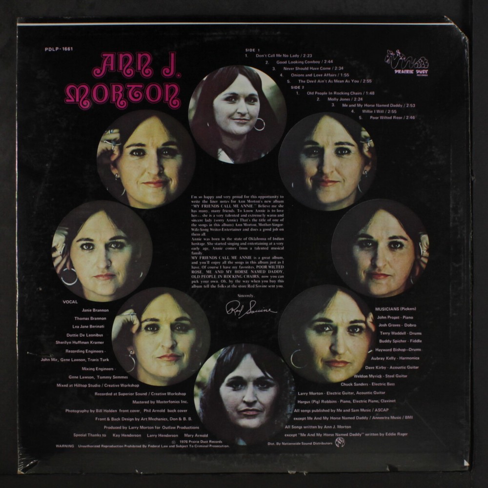 Item Details ANN J. MORTON my friends call me annie Label: PRAIRIE DUST 1661 Format: 12" LP (33 RPM) Disc Condition: Still Sealed Cover Condition: Still Sealed , cut corner Genre: Country Price: $20 Shipping Info All orders are processed and shipped within 2 business days of receipt. We package and ship our vinyl records with the greatest care, using extra-thick packaging to ensure that your rare and collectible vinyl records arrive in pristine condition. Domestic Shipments USPS Priority Mail LP Only Shipments $15 for 1st LP + $2 each additional LP 45s, CDs and Cassettes $10.00 for 1st + $1 each additional Mixed Shipments $15 for 1st LP + $2 each additional LP / $1 each additional 45/CD/Cassette Oversized CDs, Cassettes, & 45s $14 base rate for 1st / $1 base rate each additional oversized + $1 each 45/CD/Cassette USPS Media Mail LP Only Shipments $7 for 1st LP + $1 each additional LP Mixed Shipments $7 for 1st LP + $1 each additional Oversized CDs, Cassettes, & 45s $6 base rate for 1st + $1 each 45/CD/Cassette Note: All domestic shipments are insured. International Shipments Air Mail LP Only Shipments $20 for 1st LP + $5 each additional LP 45 Only Shipments $18 for 1st 45 + $1 each additional 45 Mixed Shipments $20 for 1st LP + $5 each additional LP / $1 each additional Oversized CDs, Cassettes, & 45s $19 base rate for 1st / $1 each additional oversized + $1 each 45/CD/Cassette Note: Double LPs, box sets, etc. will incur additional shipping costs as indicated above. Record Grading Grade Explanation SS Still Sealed In factory-fresh condition. M Mint We don't use this grade. M- Mint Minus A near perfect, probably unplayed record. VG+ Very Good Plus Close to like new with only superficial signs of use that don't affect play. Only well cared for records will grade out to VG+. Will satisfy all but the most demanding collector. VG Very Good A used, reasonable copy. There will be obvious signs of wear and the possibility of light surface noise between tracks or during quiet passages, but still quite nice. VG- Very Good Minus Significant wear and marks and usually quite noticeable surface noise. G+ Good Plus In the record world, 'Good' is not good! From here on down (Fair, Poor), we're talking about beat-up records. * Unless noted, every record is an original issue for the label and catalog number. About Us Records By Mail offers one of the most comprehensive selections of vinyl LPs and 45s available anywhere. Housed in an 8,000 square foot warehouse that currently holds over 2 million records, Craig and his talented, dedicated staff serve music lovers in more than 60 countries. Records by Mail prides itself on maintaining one of the largest selections of rare vinyl records available anywhere—online or off. We are always looking to improve the quality of our service, and we update our database every day, so expect new titles and improvements with alarming frequency. Browse Categories Rock & Pop Soul Blues & R&B Oldies Jazz Funk Vocal Groups Rockabilly Country Vocalists Brazilian Punk/New Wave Easy Listening Soundtracks Reggae Black Gospel Rap/Hip-Hop Latin Our Guarantee We guarantee every item we sell to be as listed. We endeavor to provide superior service, but if we make an error, we'll make every effort to make it right either by refunding all costs involved, or adjusting the selling price to everyone's satisfaction.