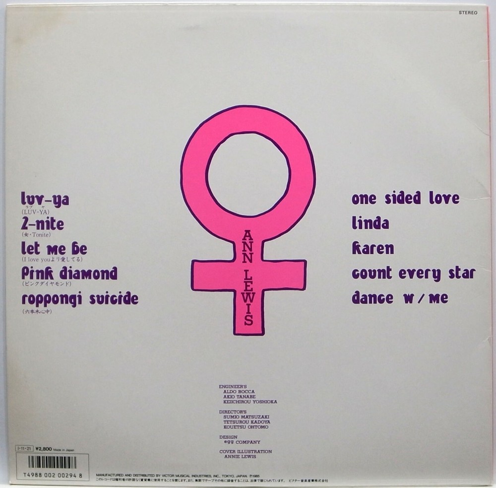 Description: Artist: ANN LEWIS Title: ANNIE'S MIX '85 - SPECIAL ENGLISH VERSION Label: VICTOR Press: VICTOR JAPAN 1985 (SJX-30285) Condition: (NM>EX>VG+>VG>VG->G) Record: EX (excellent condition ) Cover: EX (excellent condition ) Standard shipping: Registered Air With Tracking USA / Canada---------- $15.00 Europe / Australia -----$15.00 Asia ---------------------- $15.00 South America --------- $20.00 Combine shipping - $5.00 each additional LP Expedite shipping: EMS-Express Mail Service USA / Canada---------- $25.00 Asia / Australia ---------$25.00 Europe -------------------$25.00 South America -------- $30.00 Combine shipping - $5.00 each additional LP Payment: We accept Paypal only. Information - Please note: Please request invoice when you purchase multiple items. We ship out within 1-2 days after receiving payment and let you know tracking number. Import duties, taxes and charges are not included in the item price or shipping charges. These charges are the buyer's responsibility. Please check with your country's customs office to determine what these additional costs will be prior to bidding/buying. If you have any question about condition or shipping ,please contact us. Thank you very much for visiting our store!! Marushin Records