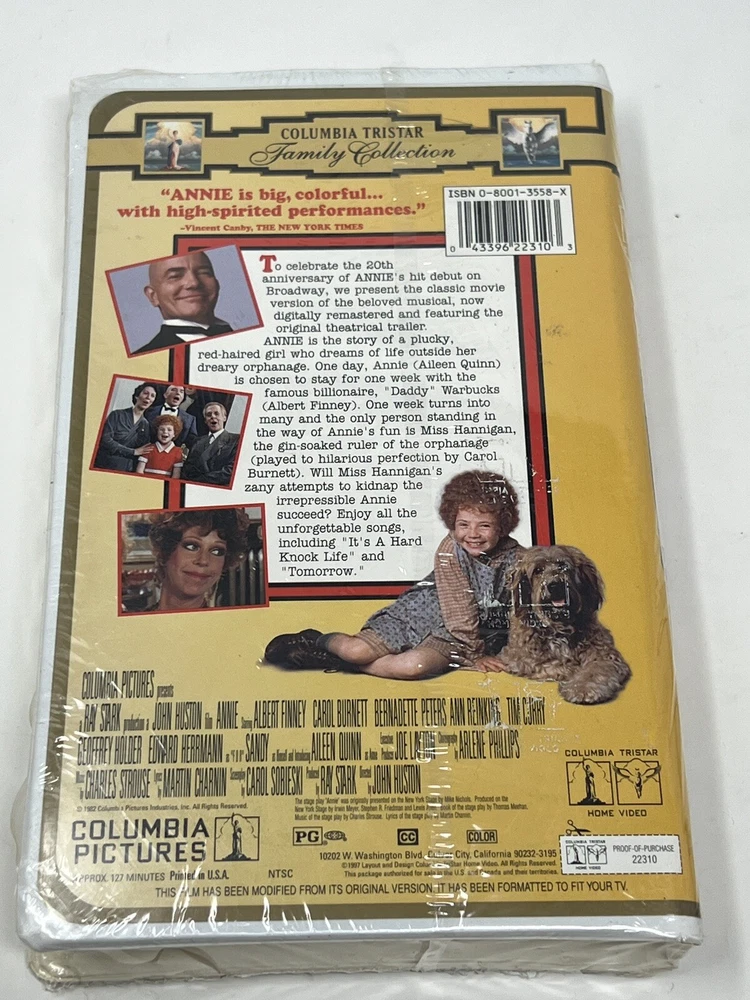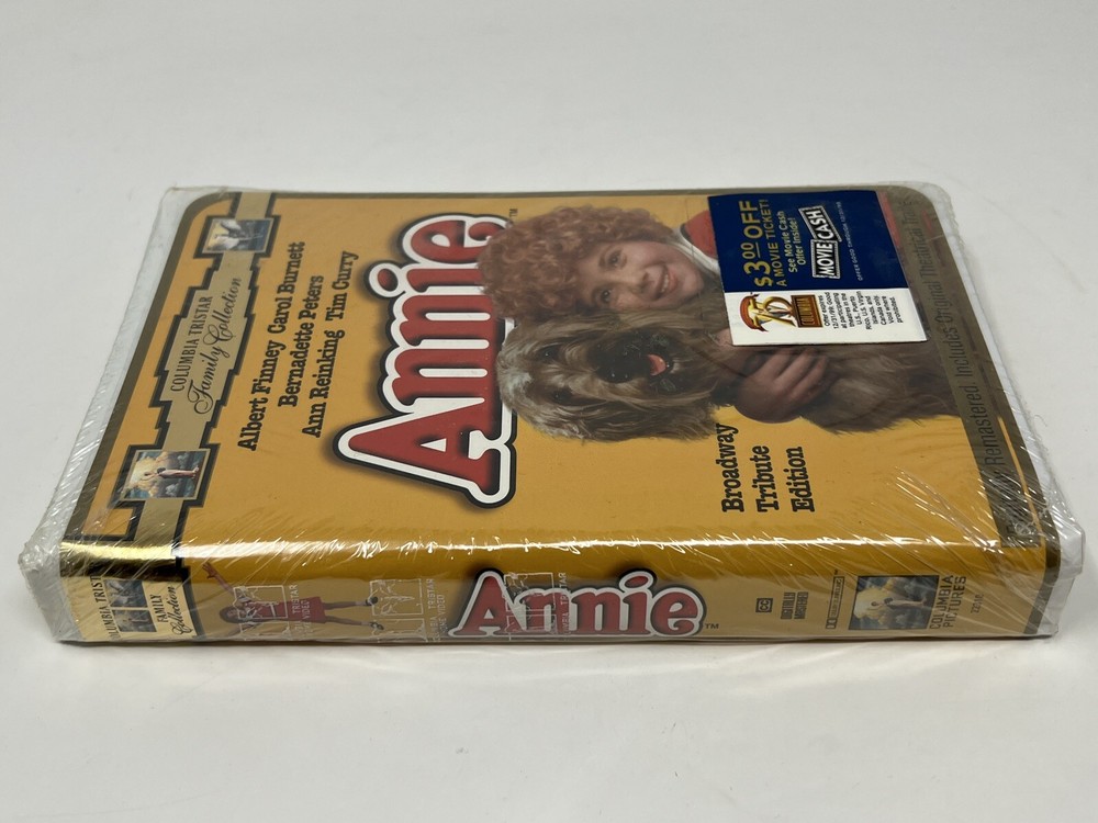 ANNIE 1997 VHS Movie New-Sealed Clamshell-Extremely Rare Edition. Some cracking of the clam shell as pictured. Unopened brand new VHS. there seems to be a Columbia three dollar off movie ticket coupon...