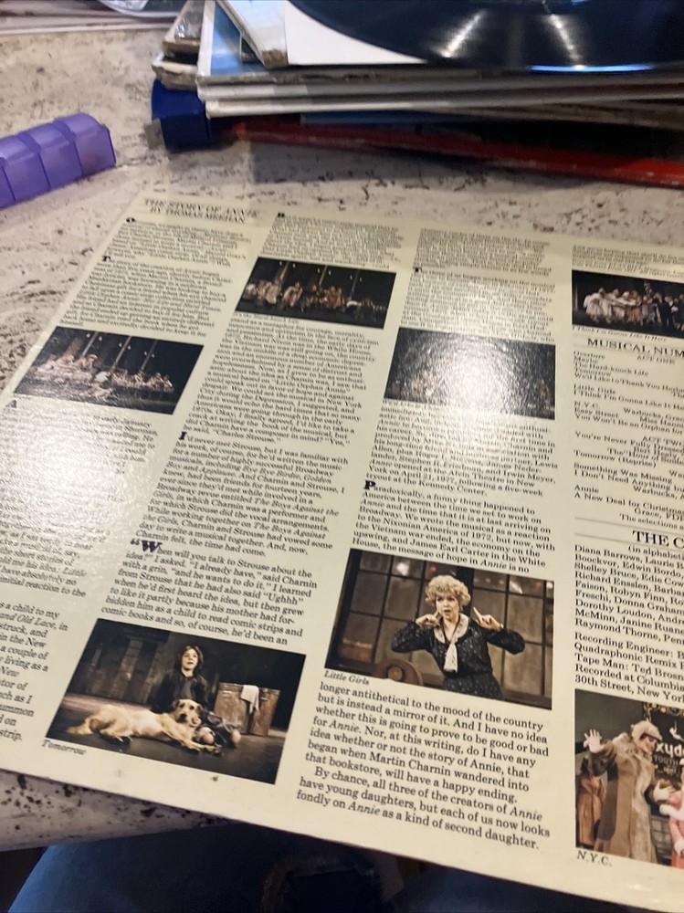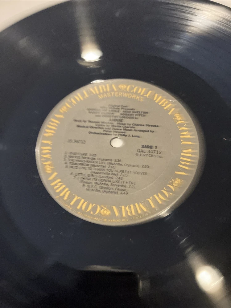 Annie a new musical- Columbia records 1977- Music by Charles strouds. JS-34712 Record is sight tested not play tested Record has no visible scratches Sleeve has no splits Jacket has wear in edges and corners Please see pictures and ask questions before bidding Pictures are of what you will receive Sold as is Will combine shipping
