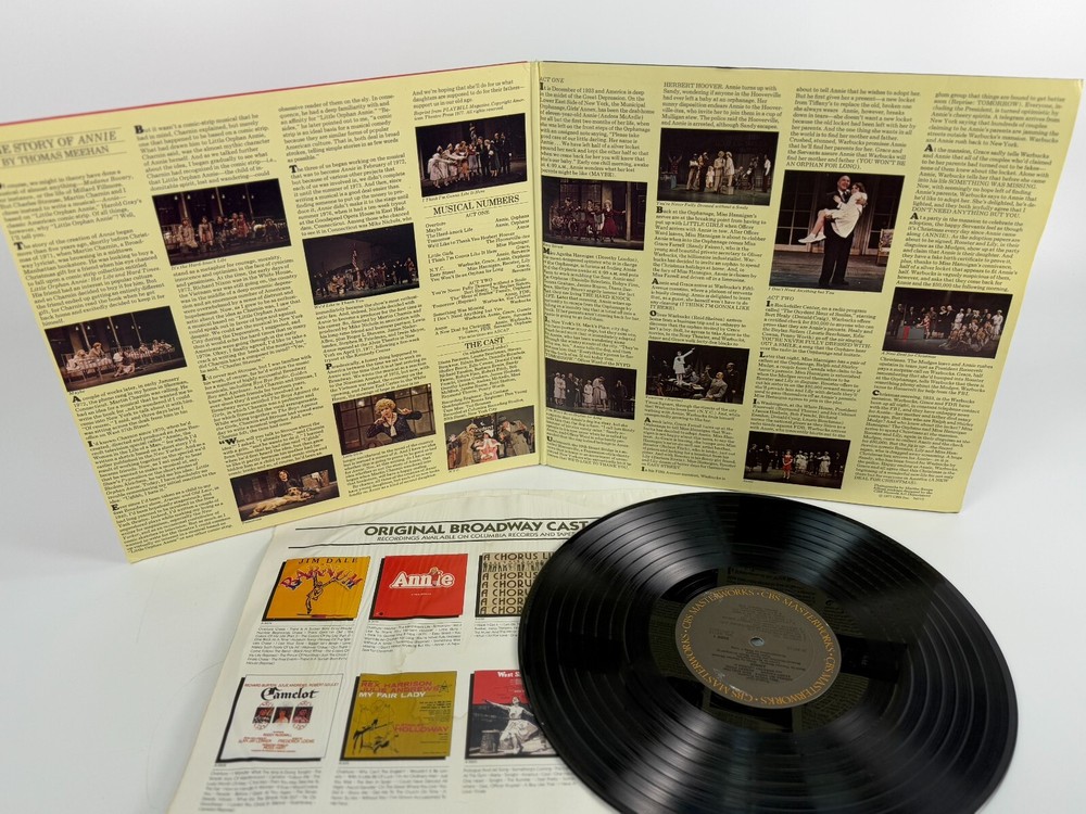 ANNIE - A New Musical Original Broadway Soundtrack - 1977 CBS Vinyl LP Gatefold This record is pre-owned in good playing condition with typical wear common of a record from this time period. The album cover may have additional wear from handling, use, and storage. The album cover and insert does have warping but are in tact. The record is in great shape and plays well. The images here are of the actual record so please look them over to see this record's specific condition All of our media is guaranteed to play though to your satisfaction. We sell thousands of records and cannot listen to all of them. We do however, visually inspect each album and discard any that are heavily warped, deep scratched, or have other damage. Please check out our feedback. This record will be placed in a poly bag, Wrapped between cardboard and then placed in a mailer. As always we offer free returns and a 30 day satisfaction guarantee. We have a large variety so please explore our store and have fun. Shipping Policy : We do combine shipping to save you money. Simply send us a note after purchasing but before payment and we will send you an adjusted invoice. Ready to ship via USPS media mail. If you want faster service please message us for a quote.