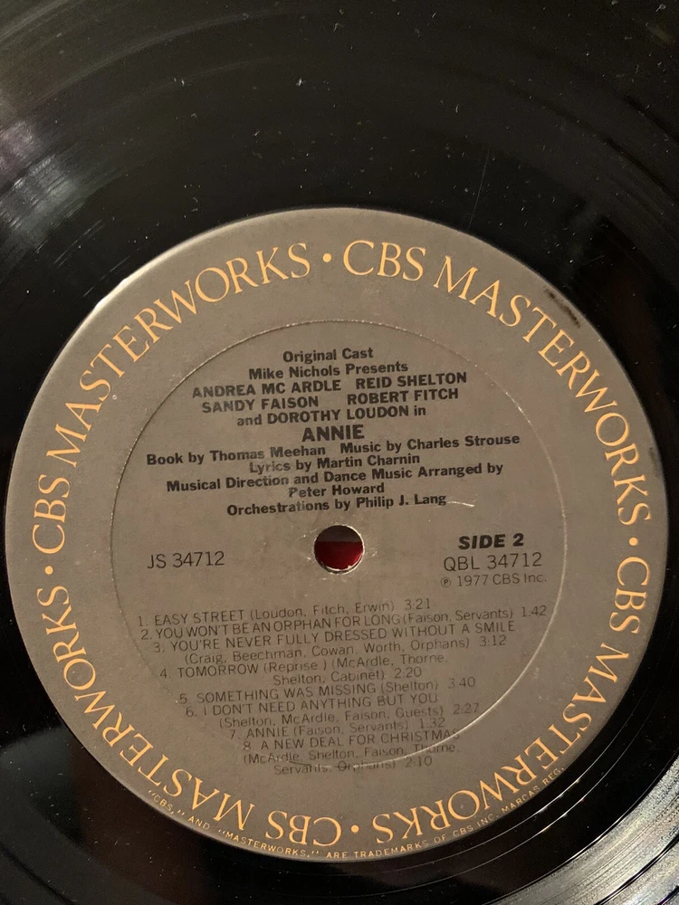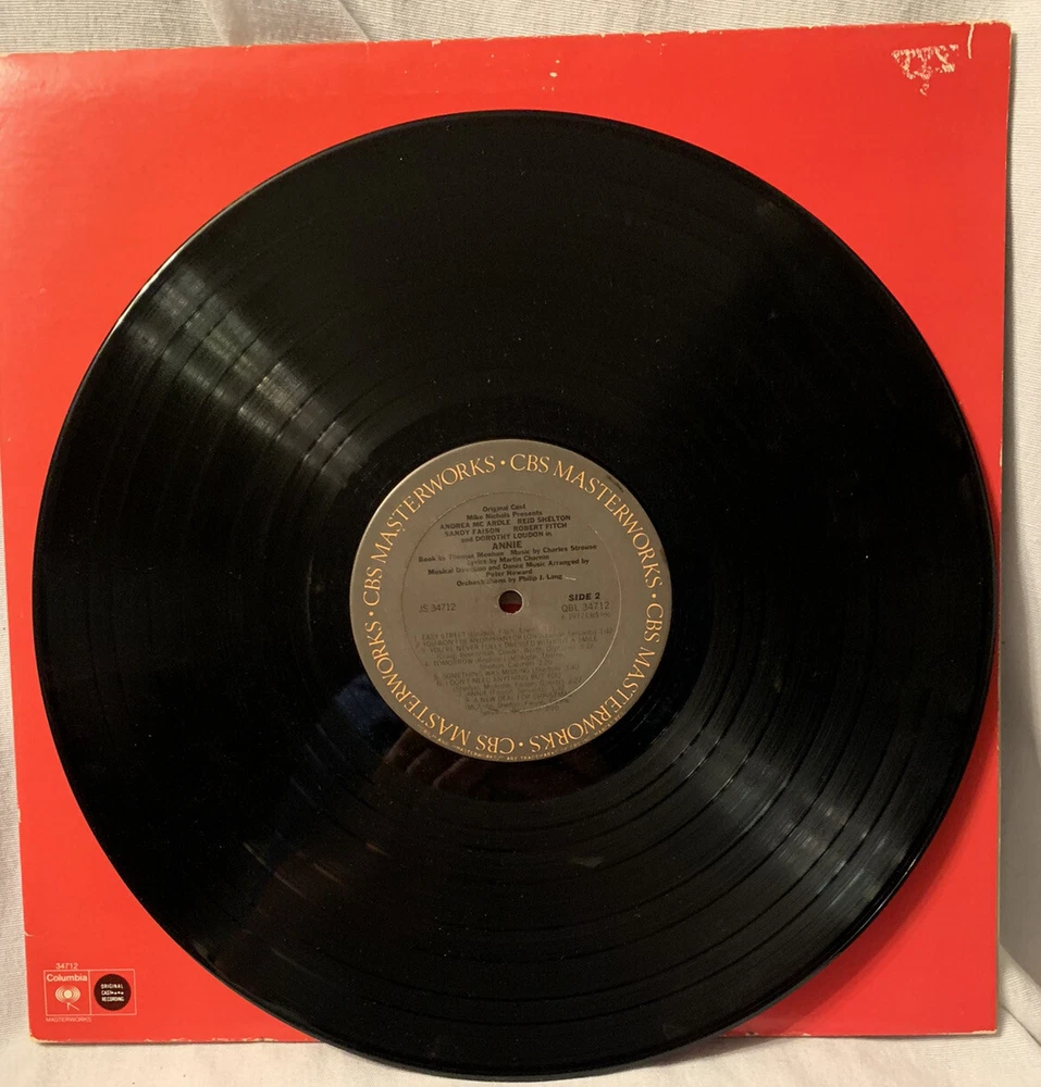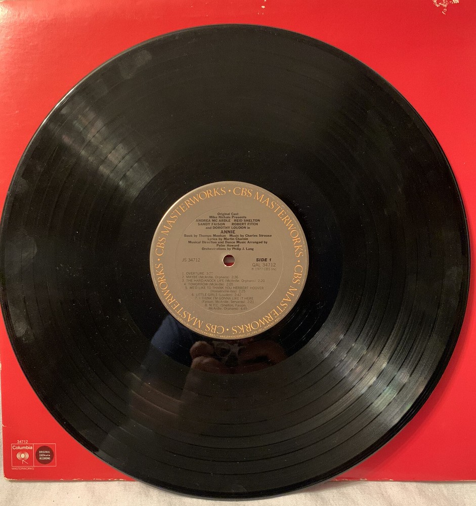 This vinyl record is a classic addition to any collection. Featuring the Broadway cast of Annie, this LP has a 33 RPM speed and comes in a cardboard sleeve. The vinyl is red in color and in excellent condition (EX), with a grading of excellent for both the record and sleeve. Released by CBS Masterworks in 1977, this musical soundtrack is a must-have for any fan of the genre. The record is 12" in size and is made of vinyl material. This item is perfect for those who appreciate vintage vinyl records and collectibles. Add it to your collection today!