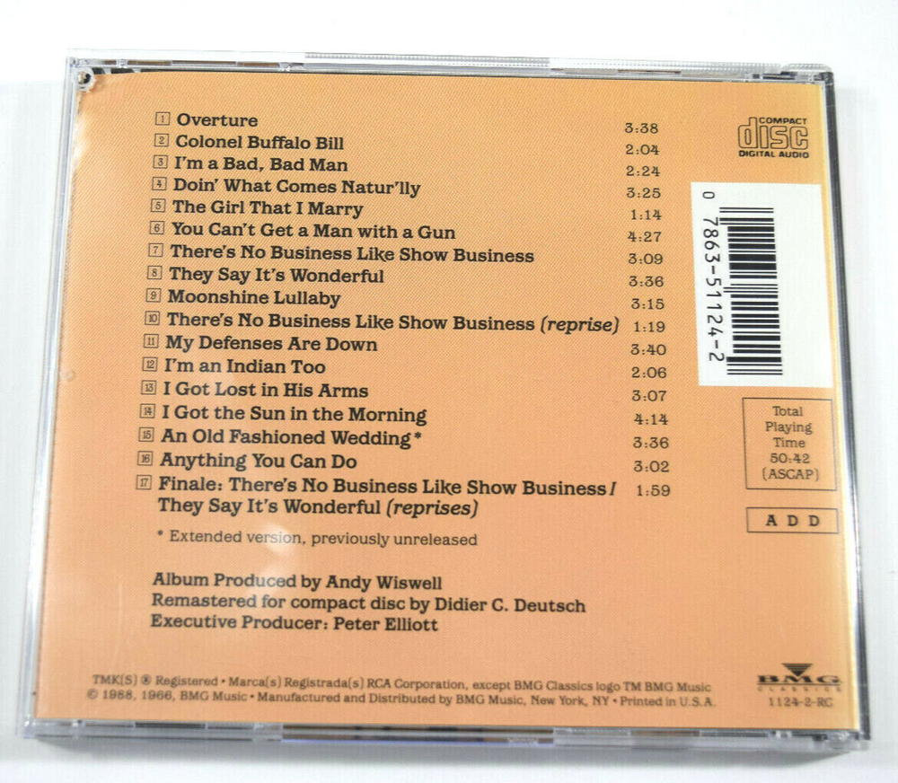 | Seller Notes | “ANNIE GET YOUR GUN: Broadway Cast, Ethel Merman Irving Berlin CD” |
