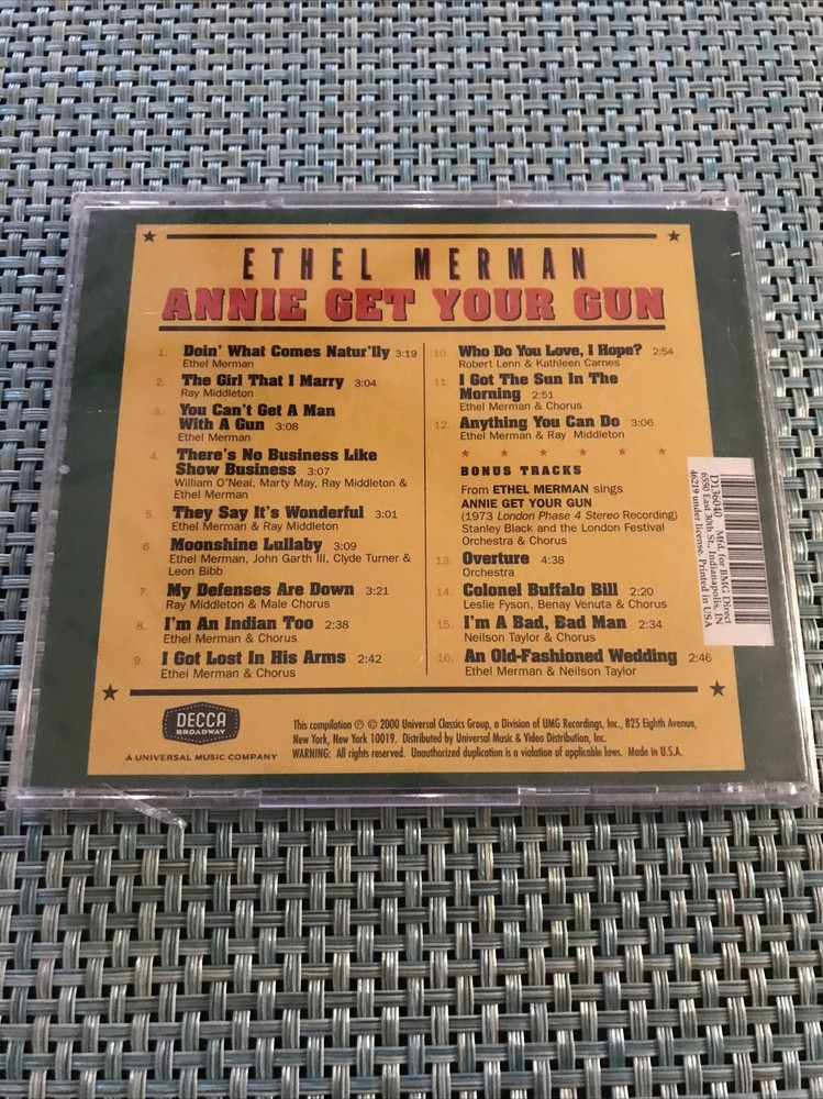 ANNIE GET YOUR GUN CD musical ETHEL MERMAN irving berlin ray middletn BONUS HITS. Shipped USPS Media mail G