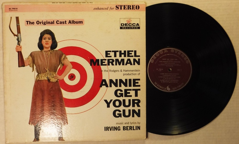 This Auction is for: TITLE: Annie Get Your Gun - Original Cast Album ARTIST: Music & Lyrics by Irving Berlin LABEL: Decca DL 79016 – Enhanced Stereo Vinyl LP Album . TRACKS: Please see scans. YEAR : 1959 – Please see my other Auctions for many more Promotional and SEALED Soundtrack, Original Cast, Individual Artist & Christmas recordings. COUNTRY OF ORIGIN: U.S.A. LP CONDITION: The record is VG or better with a couple light scuffs and scratches. COVER CONDITION: This single pocket Cover is VG+ or better and has no Seam Splits or other issues. DETAILS: I always remove the records from the Cover for shipment, to avoid damage, particularly split seams, to the Cover during shipment.