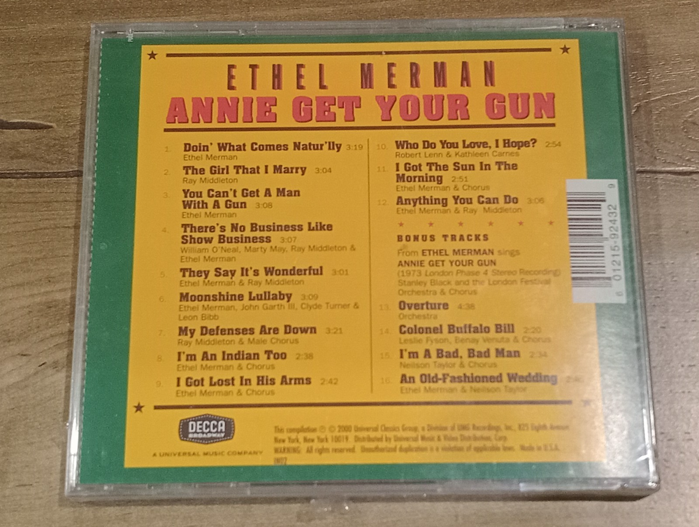 Immerse yourself in the iconic sounds of the Broadway classic with the "ANNIE GET YOUR GUN: Original Cast Recording." This audio CD brings to life the cherished melodies and dialogue from the beloved musical. Featuring the Gun Records label, this release captures the essence of the original production, showcasing the style and energy of a live musical performance. Whether you're a long-time fan or discovering the magic of "ANNIE GET YOUR GUN" for the first time, this cast recording is a must-have. Enjoy the timeless tunes and the vibrant storytelling that have made this musical a staple in the world of soundtracks and musicals. Add this piece of theatrical history to your collection today.