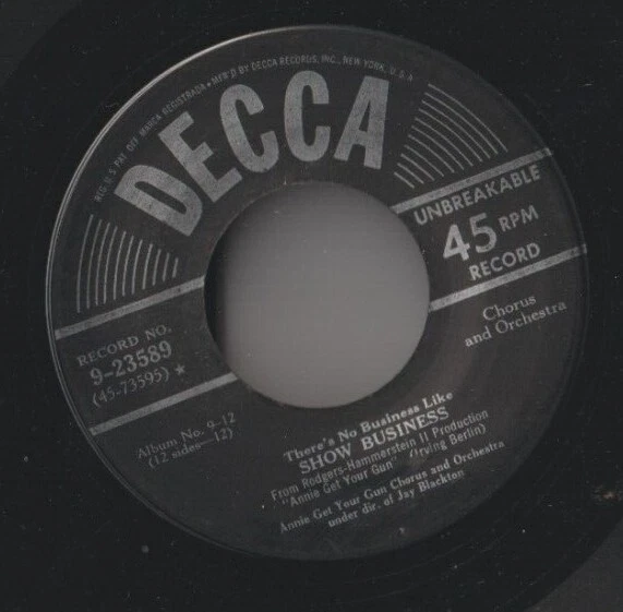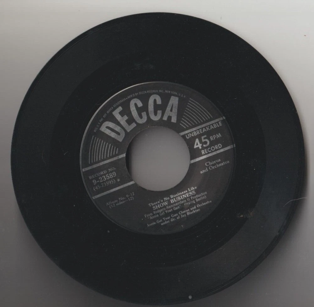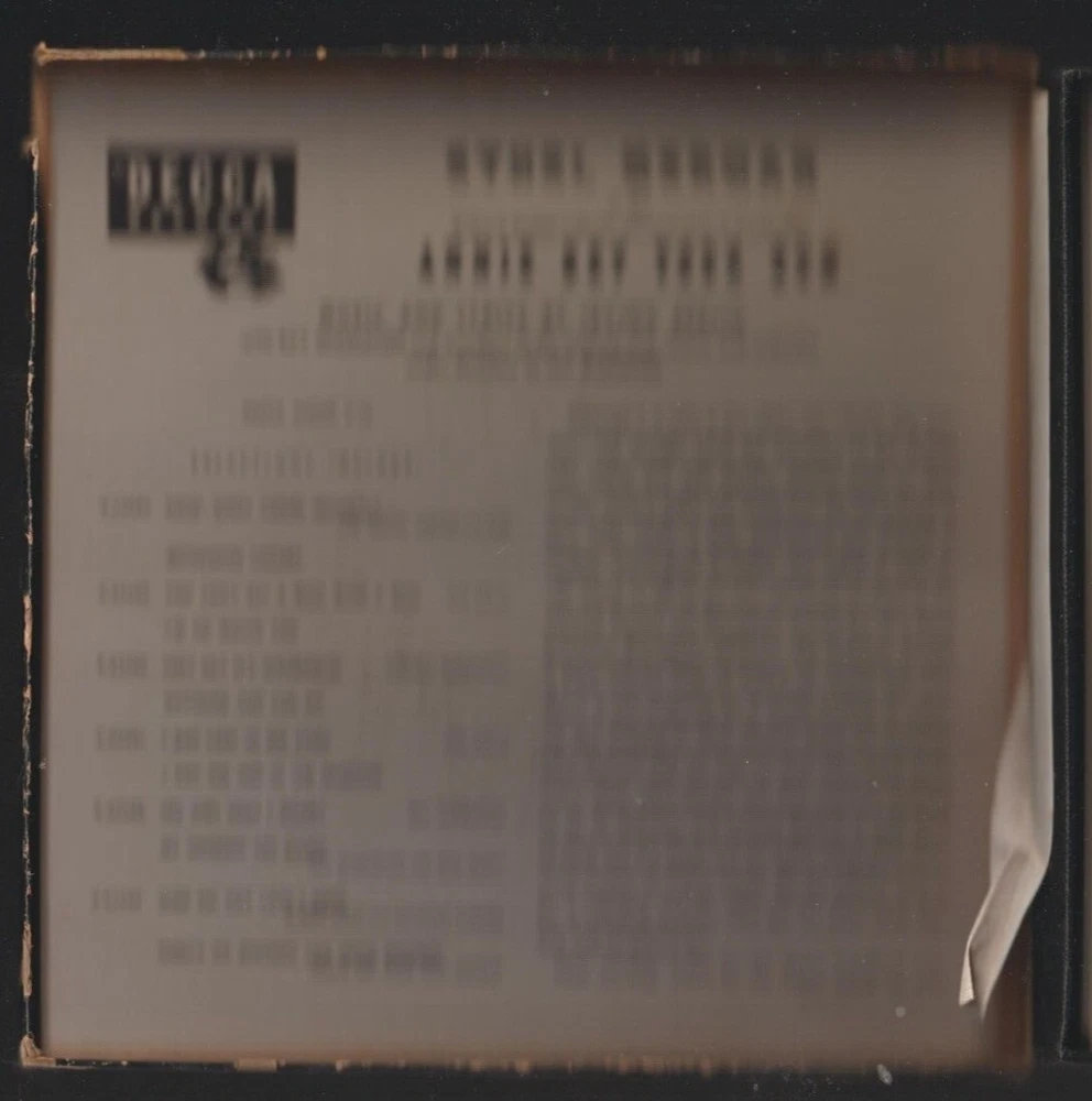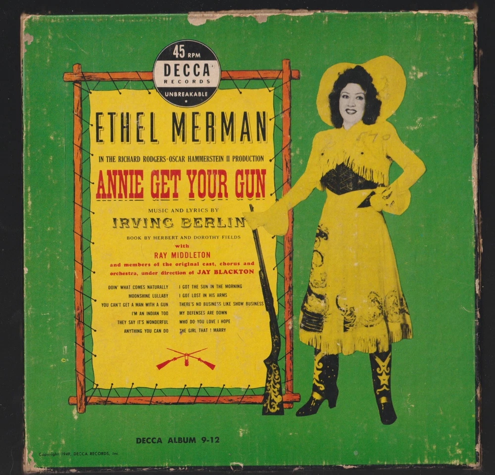 This boxed set of 6 45 RPM records features the original cast recording of "Annie Get Your Gun" starring Ethel Merman. The records come in a sturdy cardboard box and are in very good condition (VG). Inlays also in good condition. See scans. The music was composed by Irving Berlin and produced by Rodgers and Hammerstein, making it a must-have for fans of musical theater. The set is a great addition to any collection of vinyl records and is sure to bring joy to anyone who loves classic musicals. The black vinyl records are easy to handle and will provide hours of listening pleasure. Don't miss out on this opportunity to own a piece of musical history! The condition of the box is not good, wear on the outside and discoloration on the inside, one seam coming loose. However, the records are in great shape. No scratches or scuffs, inlays good. See scans.