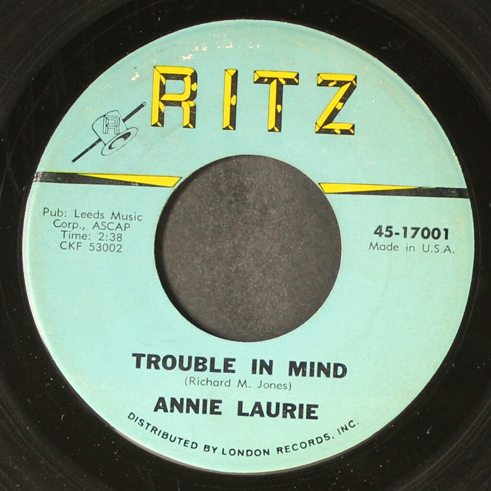 Item Details ANNIE LAURIE trouble in mind / time out for tears Label: RITZ 17001 Format: 7" Single (45 RPM) Disc Condition: VG Genre: Blues & R&B Price: $10 Shipping Info All orders are processed and shipped within 2 business days of receipt. We package and ship our vinyl records with the greatest care, using extra-thick packaging to ensure that your rare and collectible vinyl records arrive in pristine condition. Domestic Shipments USPS Priority Mail LP Only Shipments $15 for 1st LP + $2 each additional LP 45s, CDs and Cassettes $10.00 for 1st + $1 each additional Mixed Shipments $15 for 1st LP + $2 each additional LP / $1 each additional 45/CD/Cassette Oversized CDs, Cassettes, & 45s $14 base rate for 1st / $1 base rate each additional oversized + $1 each 45/CD/Cassette USPS Media Mail LP Only Shipments $7 for 1st LP + $1 each additional LP Mixed Shipments $7 for 1st LP + $1 each additional Oversized CDs, Cassettes, & 45s $6 base rate for 1st + $1 each 45/CD/Cassette Note: All domestic shipments are insured. International Shipments Air Mail LP Only Shipments $20 for 1st LP + $5 each additional LP 45 Only Shipments $18 for 1st 45 + $1 each additional 45 Mixed Shipments $20 for 1st LP + $5 each additional LP / $1 each additional Oversized CDs, Cassettes, & 45s $19 base rate for 1st / $1 each additional oversized + $1 each 45/CD/Cassette Note: Double LPs, box sets, etc. will incur additional shipping costs as indicated above. Record Grading Grade Explanation SS Still Sealed In factory-fresh condition. M Mint We don't use this grade. M- Mint Minus A near perfect, probably unplayed record. VG+ Very Good Plus Close to like new with only superficial signs of use that don't affect play. Only well cared for records will grade out to VG+. Will satisfy all but the most demanding collector. VG Very Good A used, reasonable copy. There will be obvious signs of wear and the possibility of light surface noise between tracks or during quiet passages, but still quite nice. VG- Very Good Minus Significant wear and marks and usually quite noticeable surface noise. G+ Good Plus In the record world, 'Good' is not good! From here on down (Fair, Poor), we're talking about beat-up records. * Unless noted, every record is an original issue for the label and catalog number. About Us Records By Mail offers one of the most comprehensive selections of vinyl LPs and 45s available anywhere. Housed in an 8,000 square foot warehouse that currently holds over 2 million records, Craig and his talented, dedicated staff serve music lovers in more than 60 countries. Records by Mail prides itself on maintaining one of the largest selections of rare vinyl records available anywhere—online or off. We are always looking to improve the quality of our service, and we update our database every day, so expect new titles and improvements with alarming frequency. Browse Categories Rock & Pop Soul Blues & R&B Oldies Jazz Funk Vocal Groups Rockabilly Country Vocalists Brazilian Punk/New Wave Easy Listening Soundtracks Reggae Black Gospel Rap/Hip-Hop Latin Our Guarantee We guarantee every item we sell to be as listed. We endeavor to provide superior service, but if we make an error, we'll make every effort to make it right either by refunding all costs involved, or adjusting the selling price to everyone's satisfaction.