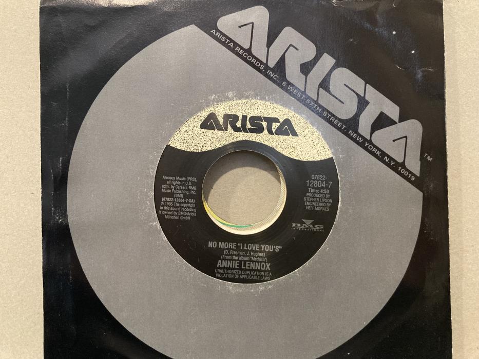 Rare 45 pressing of Annie Lennox No More I Love You's! Arista 07822-12804-7. Perfect for your jukebox! Don't let this get away. Winning bidder: watch for a followup email about your free gift (it's another 45!). US buyers - combine shipping to buy as many records as you want without extra shipping charges (about $3.50 total!). On eBay since 1996 -- buy with confidence. Guaranteed to play at listed condition or better. Thanks for reading!