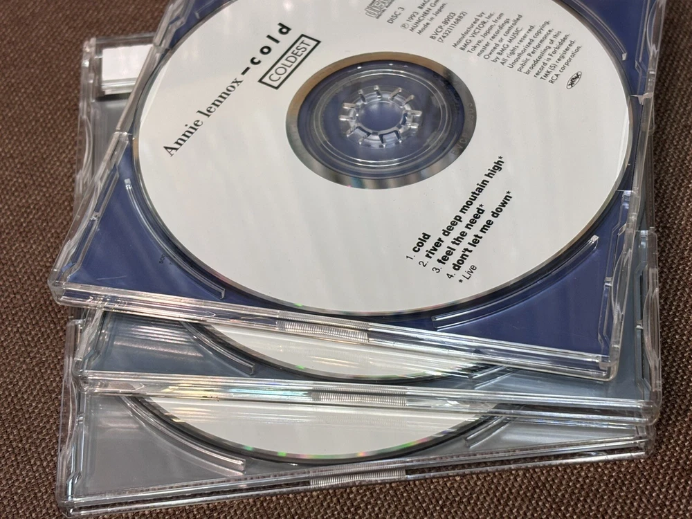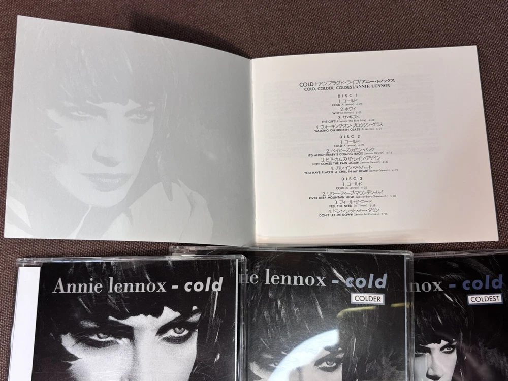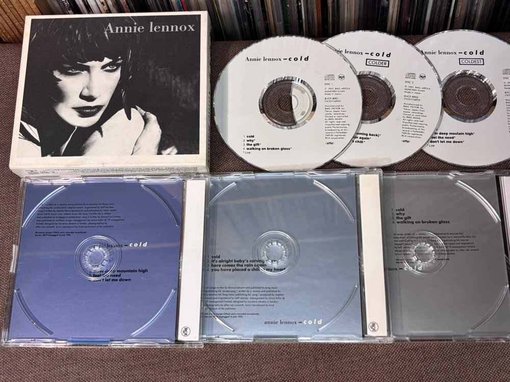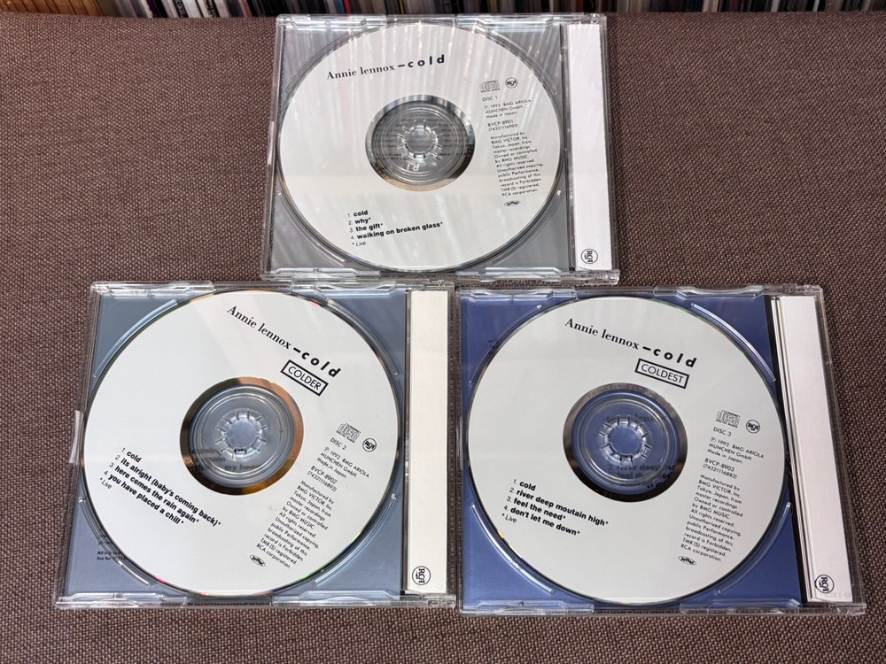 SHIPPING IS FREE! TO ALL OVER THE WORLD via registered AIR with tracking No extra shipping needed when you buy additional FREE SHIPPING items ANNIE LENNOX - Cold (1993) Eurythmics JAPAN CD, 3 x CD, MAXI, BOX, 1993 issue, promo / sample marks on CD hub removed w / Picture Slip Case + 24-page Japanese B ooklet (No OBI) RCA/BMG VICTOR JAPAN BVCP-8901~3 This is a RARE Japanese 12-track 3 MAXI CD BOX set released from RCA/BMG VICTOR JAPAN in 1993. Including Cold, Colder & Coldest CD singles featuring 9 live tracks. Cat. number : BVCP-8901~3 ( RCA/BMG VICTOR JAPAN ) This is not a bootleg, we sell 100% genuine official items only. Import duties, taxes and charges are not included in the item price or shipping charges. These charges are the buyer’s responsibility. CHECK MORE OF OUR RELATED LISTINGS FROM THE URL LINK BELOW or 'STORE CATEGORIES' BUTTON <<LEFT! EURYTHMICS-ANNIE LENNOX ACCESSORIES / PLASTIC BAGS EXTRA % OFF WHEN YOU BUY 2 OR MORE CONDITIONS PICTURE SLIP CASE (BOX) : VG+ (Wears. Stains.) CD : VG ( promo / sample marks on CD hub removed) BOOKLET : Ex OBI : none G RADING Mint:Like new,no damages,just opened and never played Near Mint:Played several times, very light scuffs are visible Excellent:Few Slight Scratched,Scuffs,Slight Bit Folded(Stain) with the insert(OBI) Very Good:Polish Marks,Many Scratches,Large Split with the insert(OBI) Excellent does not mean "Like New", might have slight wear/or creasing. We don't grade company sleeve. FOR THE DETAILED CONDITIONS ,PLEASE EMAIL US or SEE THE PICTURES CAREFULLY BEFORE YOU BID. Track listings 1. Cold 2. Why - Live acoustic MTV Unplugged Version 3. The Gift - Live acoustic MTV Unplugged Version 4. Walking On Broken Glass - Live acoustic MTV Unplugged Version Disc 2 1. Cold 2. It's Alright (Baby's Coming Back) - Live acoustic MTV Unplugged Version 3. Comes The Rain Again - Live acoustic MTV Unplugged Version 4. You Have Placed A Chill In My Heart - Live acoustic MTV Unplugged Version Disc 3 1. Cold 2. River Deep Mountain High - Live acoustic MTV Unplugged Version 3. Feel The Need - Live acoustic MTV Unplugged Version 4. Don't Let Me Down - Live acoustic MTV Unplugged Version SHIPPING SHIPPING IS FREE! TO ALL OVER THE WORLD via registered AIR with tracking No extra shipping needed when you buy additional FREE SHIPPING items ・Import duties, taxes and charges are not included in the item price or shipping charges. These charges are the buyer’s responsibility. ・Please check with your country’s customs office to determine what these additional costs will be prior to bidding/buying. *IMPORTANT! TRACK&TRACE* USE JAPAN POST'S TRACKING TO TRACK & TRACE YOUR ITEM, AS EBAY DOESN'T ALWAYS PROVIDE CORRECT DELIVERY STATUS FOR ITEMS SHIPPED FROM JAPAN ON YOUR MY EBAY. IN CASE YOU DON'T RECEIVE ITEMS AFTER 2 WEEKS FROM THE DISPATCH NOTE FROM US, PLEASE CONTACT US FIRST AND DO NOT OPEN 'ITEMS NOT RECEIVED' CASE TOO SOON. COMBINED SHIPPING No extra shipping needed when you buy additional FREE SHIPPING items YES! We gladly combine the shipping for small extra cost, ask seller for details. CHECK OUT OUR OTHER ITEMS FOR COMBINED SHIPPING! PAYMENT Payment should be completed within 72 hours. OTHERS Import duties, taxes and charges are not included in the item price or shipping charges. These charges are the buyer’s responsibility. These charges are normally collected by the delivering freight (shipping) company or when you pick the item up - do not confuse them for additional shipping charges. We ship items ONLY to your ebay registered shipping address. CHECK MORE OF OUR RELATED LISTINGS FROM THE URL LINK BELOW or 'STORE CATEGORIES' BUTTON <<LEFT! EURYTHMICS-ANNIE LENNOX ACCESSORIES / PLASTIC BAGS EXTRA % OFF WHEN YOU BUY 2 OR MORE *IMPORTANT! TRACK&TRACE* USE JAPAN POST'S TRACKING TO TRACK & TRACE YOUR ITEM, AS EBAY DOESN'T ALWAYS PROVIDE CORRECT DELIVERY STATUS FOR ITEMS SHIPPED FROM JAPAN ON YOUR MY EBAY. IN CASE YOU DON'T RECEIVE ITEMS AFTER 2 WEEKS FROM THE DISPATCH NOTE FROM US, PLEASE CONTACT US FIRST AND DO NOT OPEN 'ITEMS NOT RECEIVED' CASE TOO SOON.