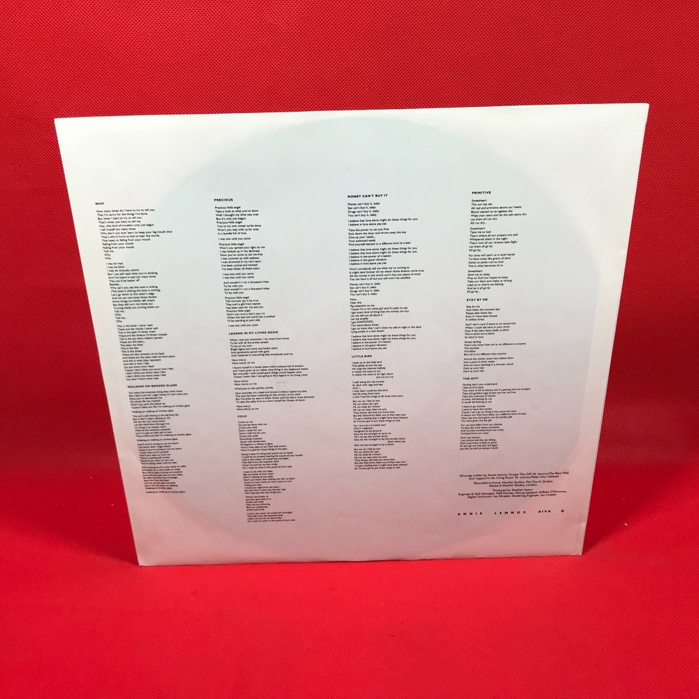 ANNIE LENNOX Diva - 1992 German pressed UK issue vinyl LP, including the hit single Walking On Broken Grass. complete with illustrated lyric inner. PL75326 Side One: 1. Why 2. Walking On Broken Grass 3. Precious 4. Legend In My Living Room 5. Cold Side Two: 6. Money Can't Buy It 7. Little Bird 8. Primitive 9. Stay By Me 10. The Gift Record Condition : Excellent Sleeve : Excellent Please check out our other items !