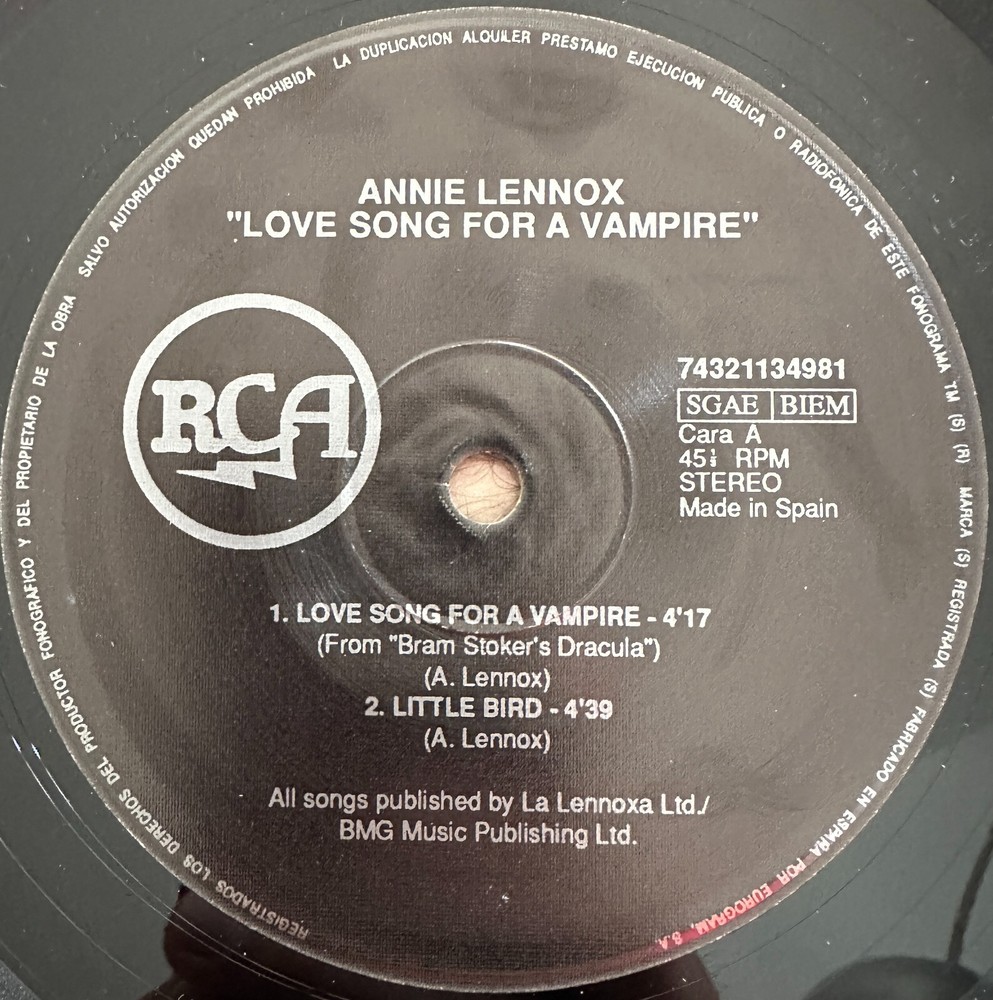 ANNIE LENNOX (EURYTHMICS) MAXI 12" SPAIN 1. LOVE SONG A VAMPIRE 4.17 2. LITTLE BIRD 4.39 b/w 1. WHY 4.53 VERY RARE SPANISH EDITION ORIGINAL Edited in 1993 BMG 74321 134981 Cover: EX Backcover: EX Record: EX PLEASE CHECK PHOTOS VINYL SHIPPING COST I'm shipping from Spain 7" Registered: SPAIN: 6$ or 5€ EUROPE: 9$ or 8€ OUT OF EUROPE: USA, JAPAN, AUSTRALIA, etc 11$ 12" or LP Registered: SPAIN: 8$ or 7€ EUROPE: 12$ or 11€ OUT OF EUROPE: USA, JAPAN, AUSTRALIA, etc 16$ CD SHIPPING COST CD single Registered: SPAIN: 6$ or 5€ EUROPE: 9$ or 8€ OUT OF EUROPE: USA, JAPAN, AUSTRALIA, etc 11$ CD jewell box Registered: SPAIN: 6$ or 5€ EUROPE: 11$ or 10€ OUT OF EUROPE: USA, JAPAN, AUSTRALIA, etc 13$ PAYMENT: PAYPAL.