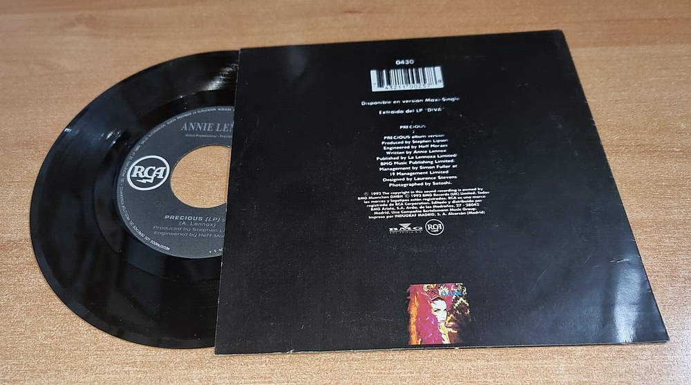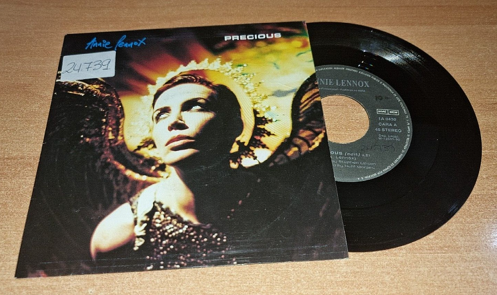 ANNIE LENNOX Ultra Rare 7" SPANISH ("MADE IN SPAIN") PROMO SINGLE VINYL: A side: PRECIOUS (edit version) B side: PRECIOUS (LP version) This RARE 7" SPANISH PROMO SINGLE is ONLY issued in SPAIN and ONLY for RADIO STATIONS AIRPLAY and very few copies pressing. Wonderful PICTURE SLEEVE. Cover condition: VERY GOOD+ (VG+) Radio sticker on the top left corner Record condition: VERY GOOD+ (VG+) Numbers writting on A label. Catalogue number: M-13531-92. This RARE 7" SPANISH PROMO SINGLE is from 1.992 and NOW is VERY, VERY HARD TO FIND!!! Special item for all the ANNIE LENNOX and/or EURYTHMICS fans and collectors. I SHIP ALL MY ITEMS BY REGISTERED AIRMAIL (with INSURANCE). IN THIS WAY EBAY AND PAYPAL CAN KNOW WHAT I SENT YOU THE PACKET AND EBAY AND PAYPAL CAN KNOW WHAT YOU RECEIVED THE PACKET BECAUSE THESE PACKETS ARE TRACKED AND YOU NEED PUT YOUR SIGNATURE FOR PICK-UP THE PACKET!! Payment must be received within 4 days of the auction ending date.
