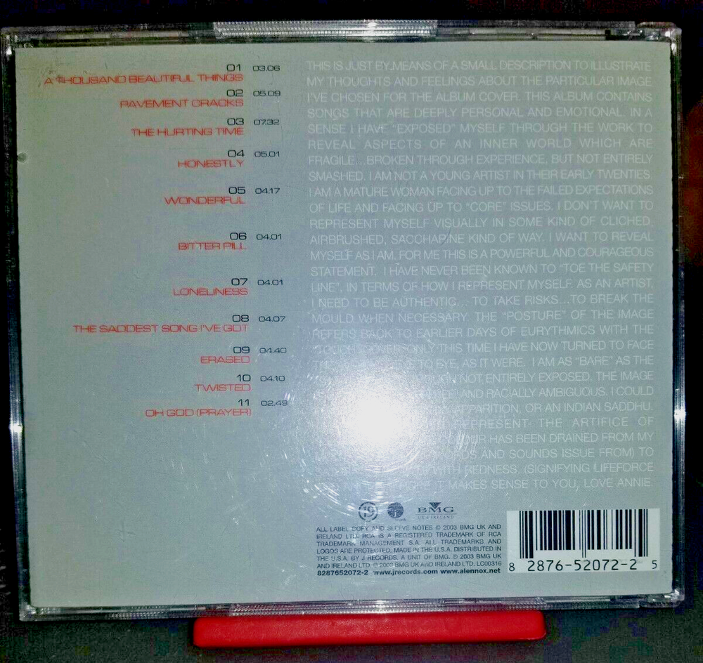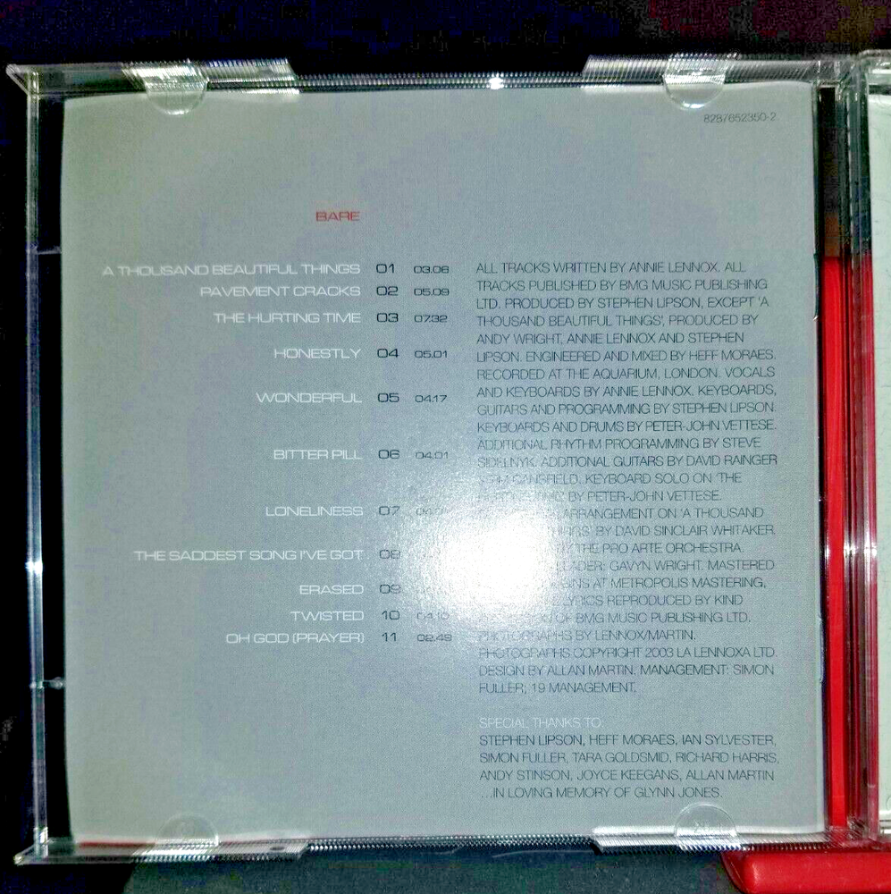 The product is a limited edition CD titled "Bare" by Annie Lennox, released in 2003 under J Records. With a runtime of 49 minutes, the album features a blend of rock and pop music genres. Produced by Amy Wright, Annie Lennox, and Steve Lipson, this release includes music videos and performances by the renowned artist Annie Lennox. This CD offers a diverse selection of music, showcasing Lennox's talent and artistry in the rock and pop genres.