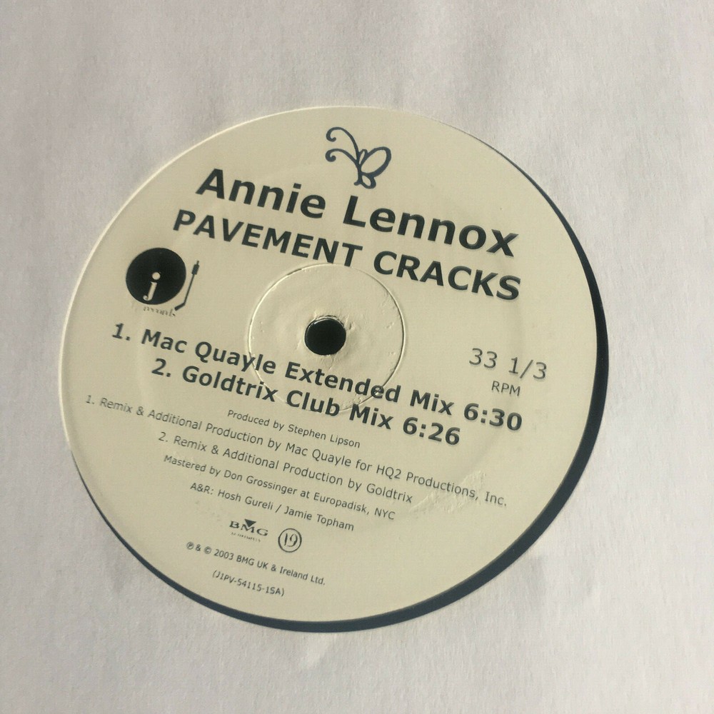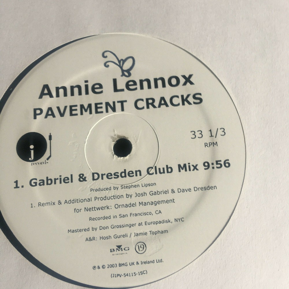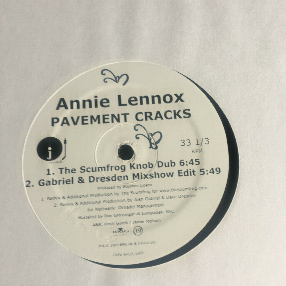 ANNIE LENOX - PAVEMENT CRACKS - 2 - 12" VINYL SET WHITE LABEL PROMO FROM 2003!! PLEASE SEE PICS! 12" # 1: SIDE 1: GABRIEL & DRESDEN CLUB MIX (9:56); SIDE 2: THE SCUMFROG KNOB MIX (6:45); GABRIEL & DRESDEN MIXSHOW (5:49); 12" # 2: SIDE 1: THE SCUMFROG CLUB MIX (8:21); SIDE 2: MAC QUAYLE EXTENDED MIX (6:30); GOLDTRIX CLUB MIX (6:26); RECORDS ARE IN MINT NEVER PLAYED CONDITION; GENERIC COVER IS IN NEAR MINT CONDITION; PARTIAL OUTLINE OF RECORD VISABLE THRU COVER.. FINAL SALE -- NO REFUNDS OR RETURNS --