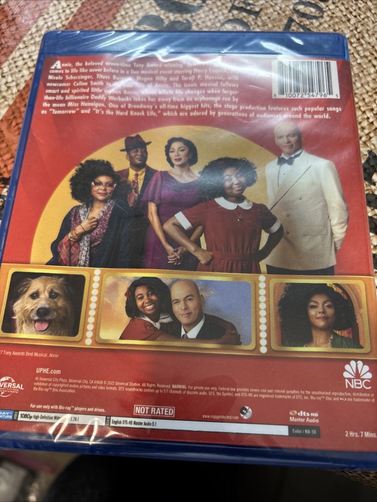 The product is a Blu-ray of "Annie Live," a 2021 musical film with a runtime of 133 minutes. It features a family-friendly storyline and is presented in English with a 1.78:1 aspect ratio. Produced by Universal Studios, this Blu-ray is region code A and is categorized under Movies in the eBay listing. The title of the product is "ANNIE LIVE / NEW Bluray."