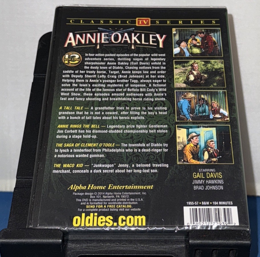 Annie Oakley: Volume 13 is a new DVD that has been sealed. This DVD features the classic TV Western series that originally aired in 1956. The DVD is in the format of a Western and was produced by Alpha Video.