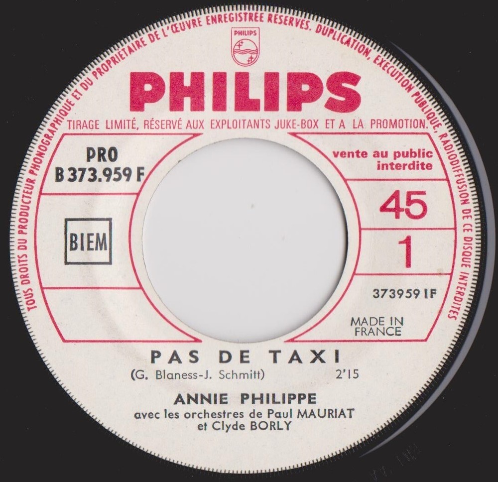 ANNIE PHILIPPE FRENCH 45 on PHILIPS cat n° PRO B 373.959 F PROMO - "pas de taxi" & "le mannequin" - RECORD IS VERY GOOD++
