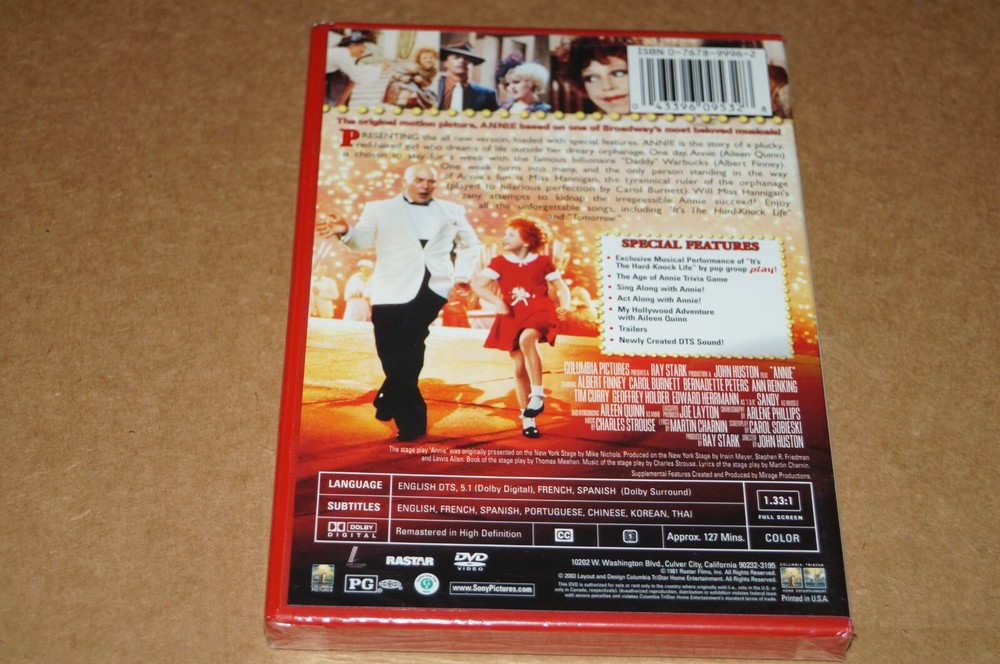 ANNIE SPECIAL ANNIVERSARY EDITION DVD FACTORY SEALED THIS IS A NEW NEVER OPENED AND STILL FACTORY SEALED DVD. THE MOVIE IS A MUSICAL/DRAMA FILM. THIS IS AN OFFICIAL MOVIE NOT A COPY....