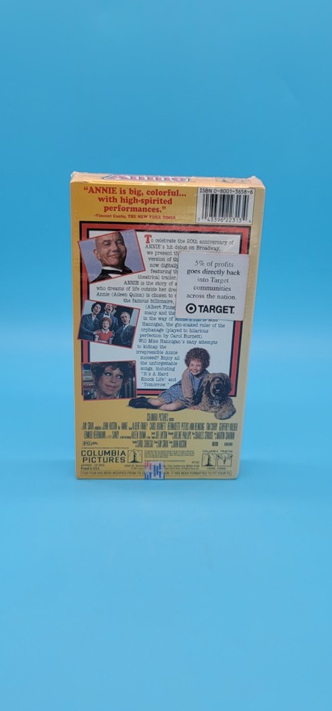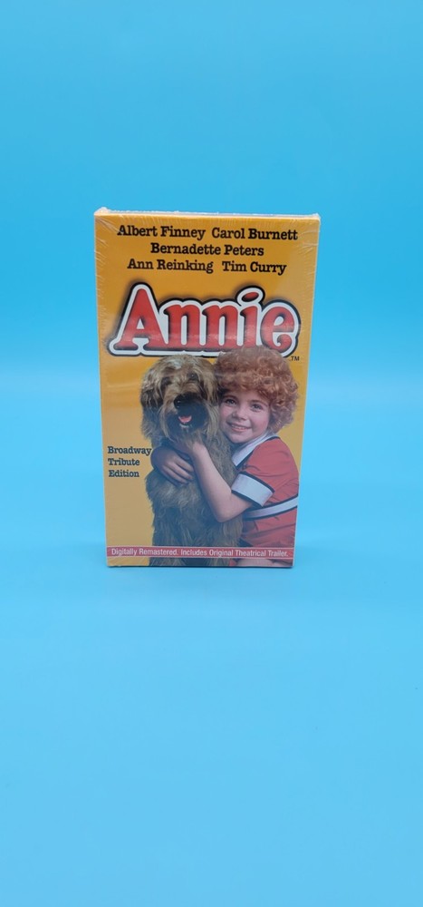 Brand new, sealed 1997 VHS of the Broadway Tribute Edition of the movie "Annie." Directed by John Huston, starring Aileen Quinn and Carol Burnett, this musical film is presented in NTSC signal standard with closed captioning. The VHS includes a slip sleeve case and is watermarked as new. This family-friendly movie, rated G, is a classic tribute to the popular Broadway production, making it a must-have for fans of musicals and performing arts.