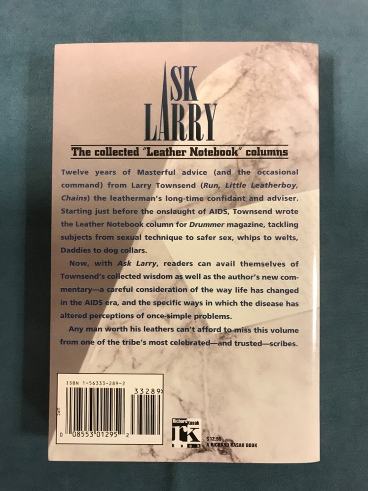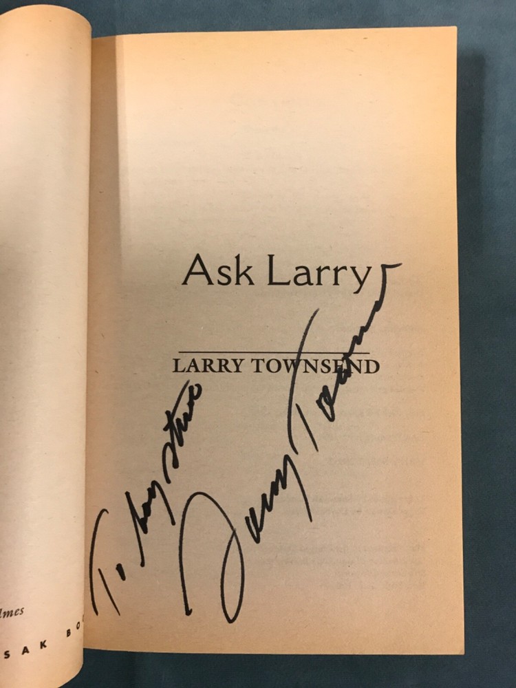 ASK LARRY, THE COLLECTED “LEATHER NOTEBOOK” Columns, Signed by Larry Townsend. 1995 first Richard Kasak edition first printing. The book is in excellent condition. Inscribed inside as shown in pics to “boy steve” I have many signed books by Larry Townsend, all paperback, am in the process of listing them now.