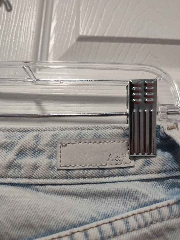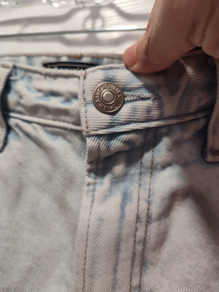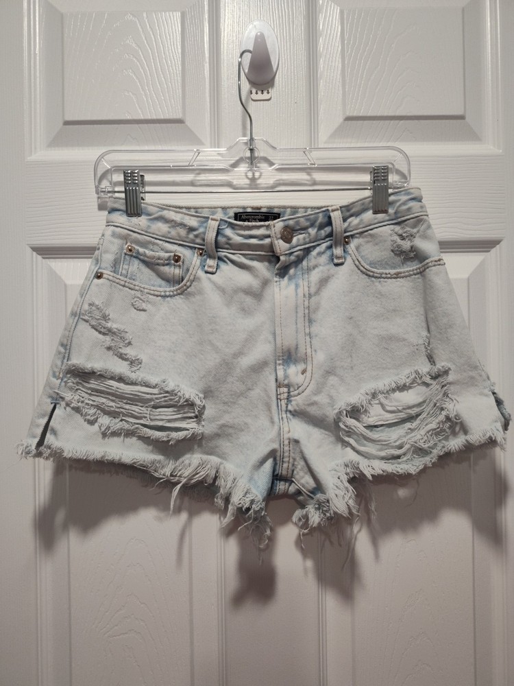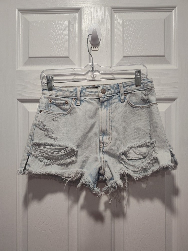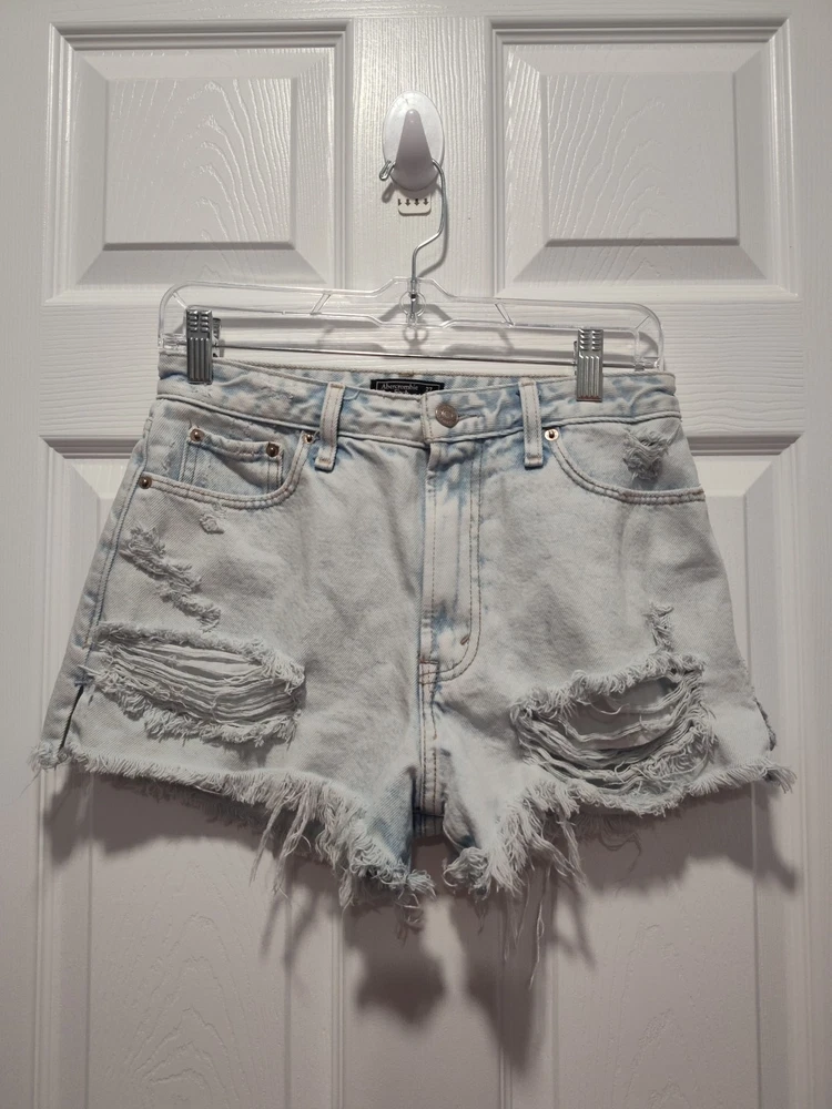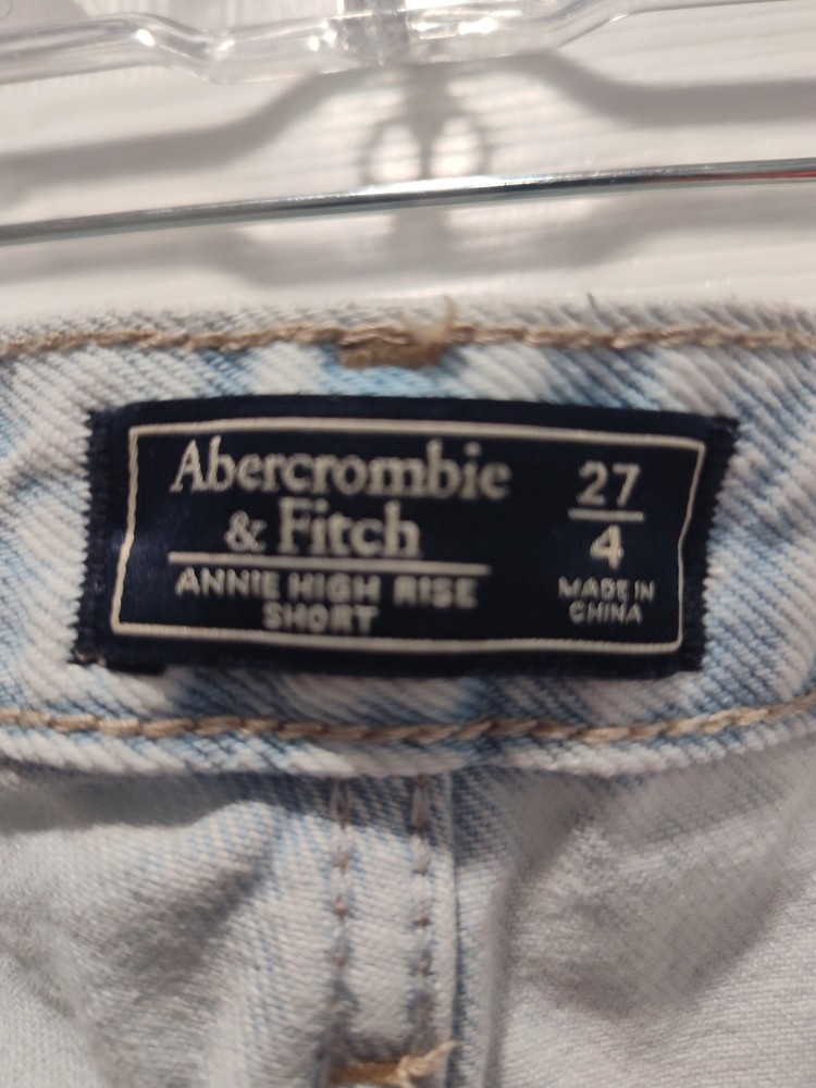 Elevate your summer wardrobe with these Abercrombie & Fitch Women's Annie Hi Rise Shorts. The light wash denim and cut-off style make them perfect for a casual day out. The high-rise waistband and flat front design offer both comfort and style, while the 5-pocket design adds practicality. These shorts come in a size 27 and have a regular fit. They feature a zip and button closure and are machine washable. The solid blue color and Abercrombie & Fitch logo accents add a touch of sophistication. Perfect for fall, spring, and summer, these shorts are a must-have addition to your wardrobe. This item is like new. The shorts do not look like they have ever been worn. Selling as preowned. Measurements waist 13.5" or 27" in diameter inseam 2" Thanks for looking! I am open to all reasonable offers Thanks for supporting a small senior owned business.