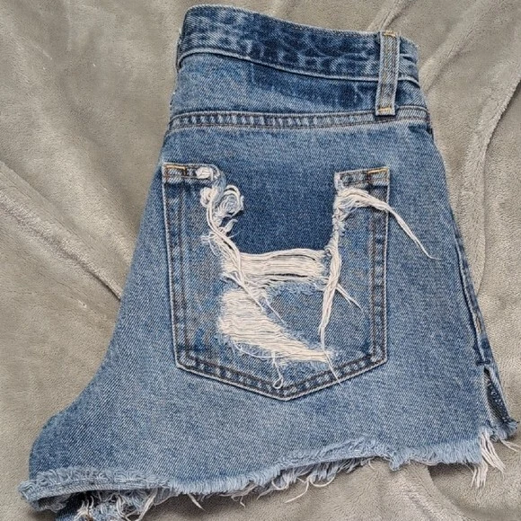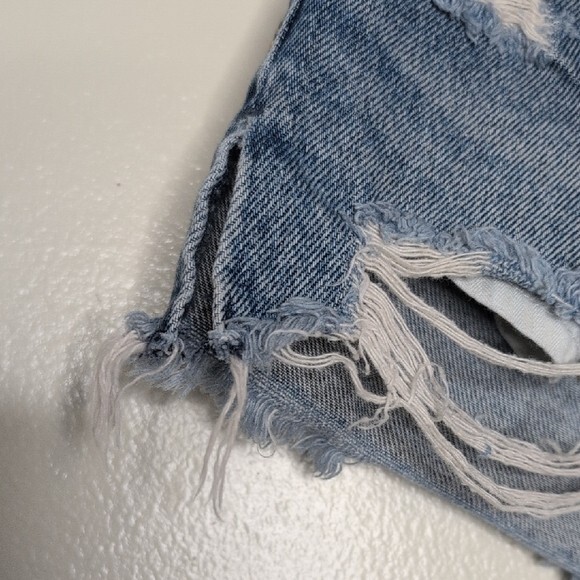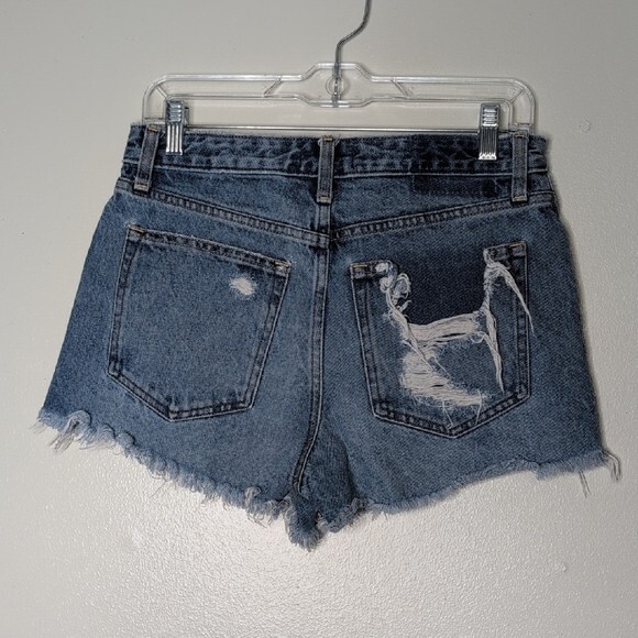 Pre owned EUC Size 28/6 Style: are a sought-after style featuring a flattering high-rise waist, distressed details, and a classic cut-off hem Stylish distressed denim shorts for a trendy look. Perfect for casual outings. Approximately measurement waist: 15" rise: 12" inseam:3" #23