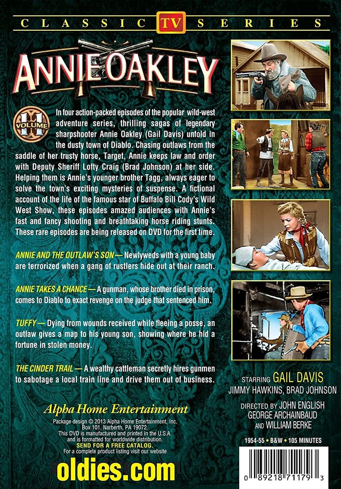 Further Details Title: Adventures of Annie Oakley, Vol. 11 Format: DVD Condition: New Number Of Discs: 1 Release Date: 07/30/2013 Actors: Gail Davis Audio Language: English Runtime: 1 hour and 45 minutes Region Code: DVD: 1 (US, Canada...) Studio: Alpha Video Description: Four more rediscovered episodes from the legendary western series. DVDs ARE REGION 1 UNLESS OTHERWISE STATED Missing Information? Please contact us if any details are missing and where possible we will add the information to our listing.