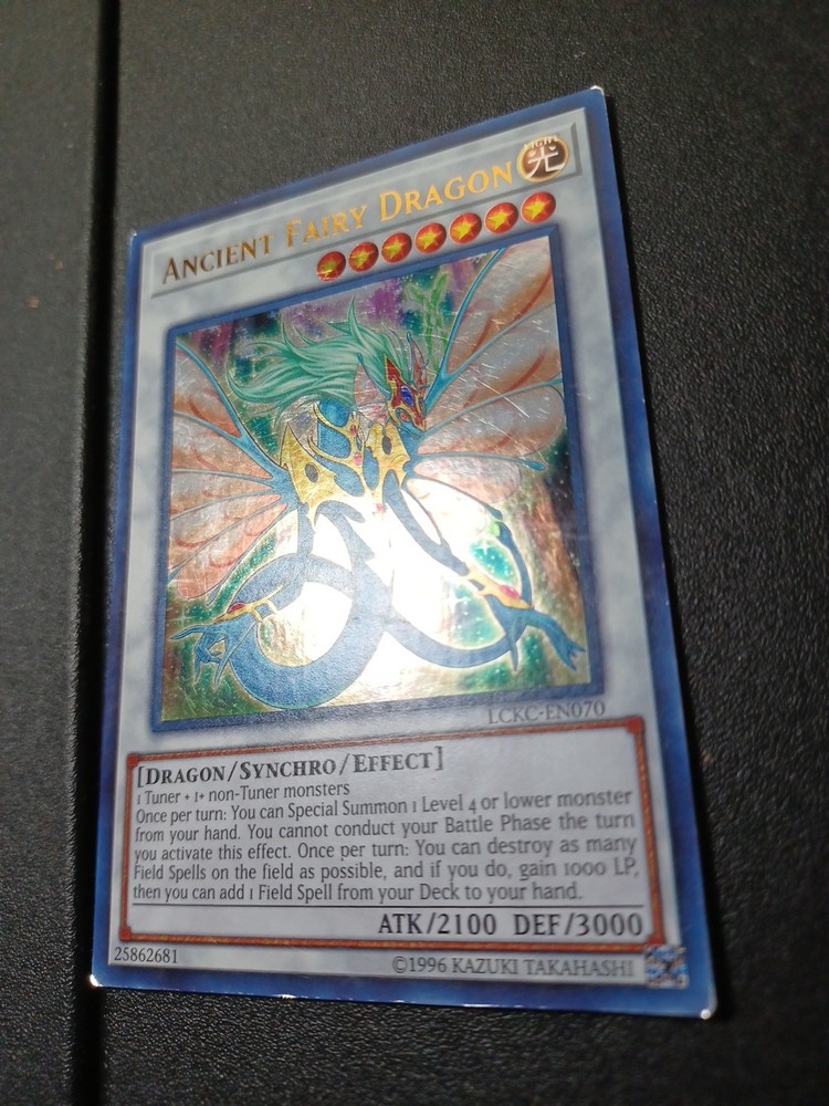 Ancient Fairy Dragon Unlimited Ultra Rare from LCKC in HP Condition. Please see pictures and feel free to ask any questions prior to purchase. All orders usually ship within 24 hours except on days USPS is closed. Most orders under $20 will ship via eBay standard envelope, orders over $20 will ship via USPS Ground Advantage. We do everything we can to ensure your purchase arrives in a timely manner and in the same condition shown on the listing. Please check out our eBay store as well for more cards and discounts.