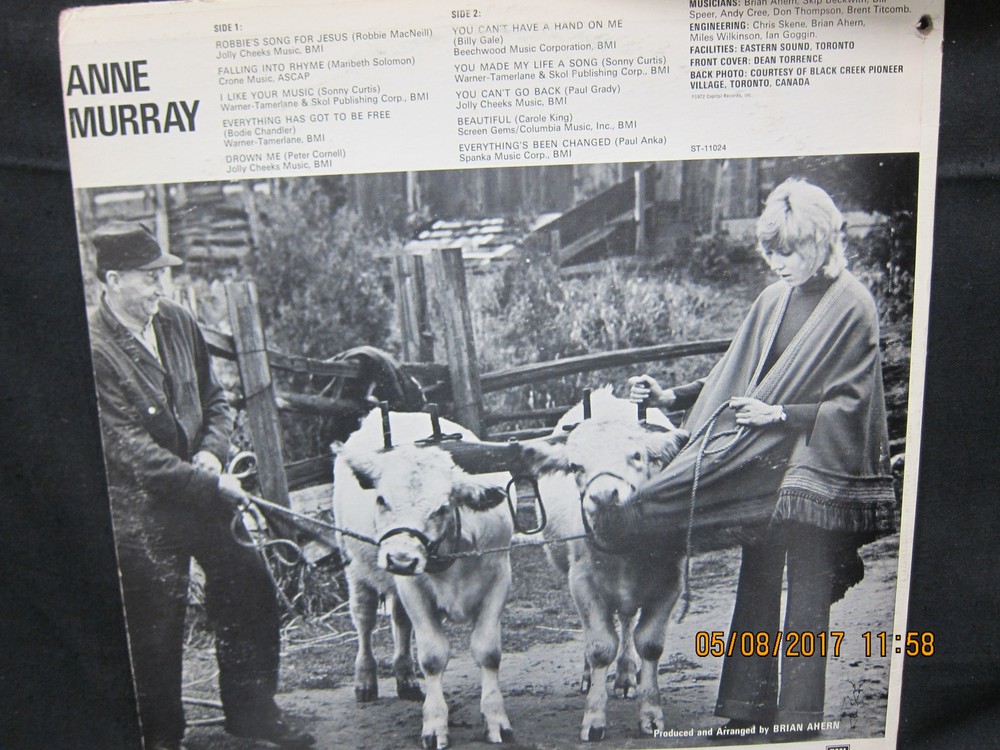 30 Day Money Back Guarantee Free Returns Combined Shipping Available Risk Free Purchase Returns at No extra Cost Except on 78s This offer is for a 12 inch 33 1/3 RPM LP Album Title: Annie Artist: Anne Murray - Label: Capitol Records Record/Album # ST-11024 Year Produced:/Recorded : 1972 Location Produced: United States This Album is Graded Record: Very Good Sleeve: Good+ Notes: Check out my other items at: https://stores.ebay.com/Luebke-Enterprizes Looking for a particular album or record? Contact us and we will try and help find it. Just contact us via Ebay Grading: Records found in our store are graded on the "Goldmine" System; The Grades we use are: Mint - Still sealed in original package Very Good Plus - No obvious signs of wear Very Good - Possible signs of use but no marring Good Plus - May have some signs of playing and some light marring Good - More obvious wear and marring but no scratches Acceptable (Record) - LP has much marring but no scratches this type LP may have more collector value than current use value Acceptable (Sleeve) - Much wear, or perhaps damage and possibly several edges repaired Shipping: LP records are shipped wrapped in bubble wrap and supported by cardboard above and below Should you have a problem with your purchase, please contact us directly and give us an opportunity to make corrections prior to your submitting Ebay Feedback.