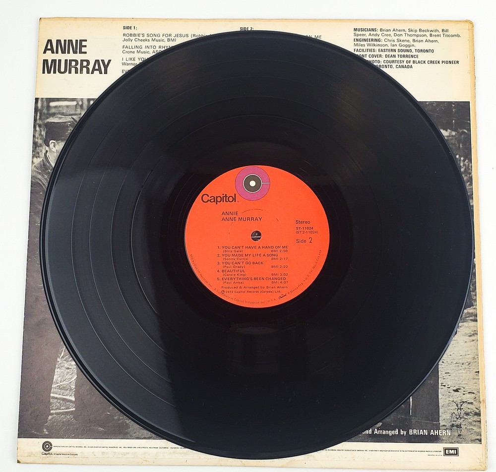 For sale is a Anne Murray Annie Record 33 RPM LP ST-11024 Capitol Records 1972 in Used condition. Product Details Condition Notes: Sleeve has some wear and discoloration but overall in good condition. Smells a bit musty. Record has some scratches but plays without issue. Spine text is somewhat readable Additional Details: About Us We are a small business based out of Ohio. We love selling all things vintage and collectible. We also offer high quality business and industrial products at incredibly low prices. If you have any questions, we would love to hear from you! Thank you for visiting our store! - The HKResale Team (Holly, Kyle, Tiffany, Jason & Nate) Shipping We ship orders the same day (if ordered before 8AM) or the next business day (M-F). Our shipping department takes pride in their work, they want you to be wowed by the unboxing experience. Each item is carefully packaged to ensure it arrives to you safely. We gladly offer combined shipping on all items in our shop . To get started, just send us a message using the "Contact Seller" button on this listing. All of our items come from our warehouse located in North Canton Ohio 44720. The post office that does our pickups is located in another city Uniontown OH 44711. So your tracking may show that your item is shipped from a zip code different than our warehouse. Contact Our customer service hours are Monday through Friday from 8:00 a.m. to 5 p.m. (EST) . We communicate through eBay's messaging system, but can also be reached at the number provided on the listing. Returns Customer satisfaction is our #1 priority! We offer 30-Day Free Returns on ALL of our items. If you are not completely satisfied with your purchase, please contact us to return your purchase within 30 days of receiving your item. Returned products must be in the same condition that you received, and must not be altered in any way. They should also include the original box and/or packaging with all tags included. Once your return is received and inspected by HK Resale (usually within 24 hours of receipt), your refund will be processed and a credit will be applied to your credit card or original payment method. Please note that depending on your credit card company, it may take an additional 2-10 business days after your credit is applied for it to be posted to your account. Please note that our warranty does not cover shipping charges TO the customer , unless you purchased a product with Free Shipping.