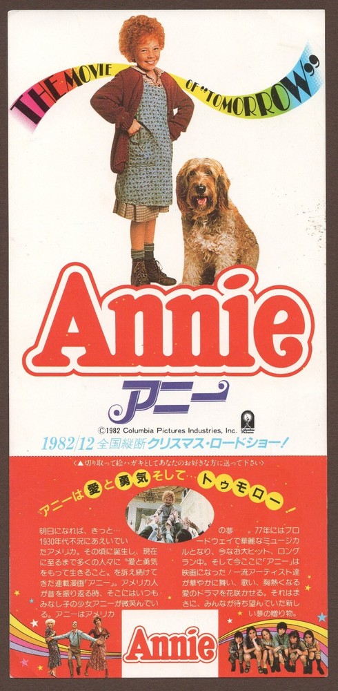 " Annie " was released in 1982 in Japan. This is a rare style ticket of the film, which can be also used as a postcard if you cut the upper half. I, too, am a collector. All the items I sell are genuine, and there is no counterfeits or pirated goods. DESCRIPTION Japanese movie discount ticket. Printed in Japan. Not a copy or re-print. Size: 224×105mm or 8.81×4.13inch CONDITION The item in the photos is the actual item. Please check the photos for details of the condition. The item comes in OPP plastic bag and carefully sandwiched between two hard cardboard sheets in order to avoid any damage during the shipment. SHIPPING I will ship the item with tracking number. Due to the recent worldwide situation, it may take the delivery time longer than usual. Please be patient if the delivery is late. I DO NOT ship to any other addresses other than your eBay registered address. Import duties, taxes and charges are not included in the item price or shipping charges. Please read "INTERNATIONAL BUYERS - PLEASE NOTE" below for more details. INTERNATIONAL BUYERS - PLEASE NOTE Import duties, taxes and charges are not included in the item price or shipping charges. These charges are the buyer's responsibility. Please check with your country's customs office to determine what these additional costs will be prior to bidding/buying. These charges are normally collected by the delivering freight (shipping) company or when you pick the item up do not confuse them for additional shipping charges. We do not mark merchandise values below value or mark items as "gifts" - US and International government regulations prohibit such behavior. Please feel free to contact me if you have any question.
